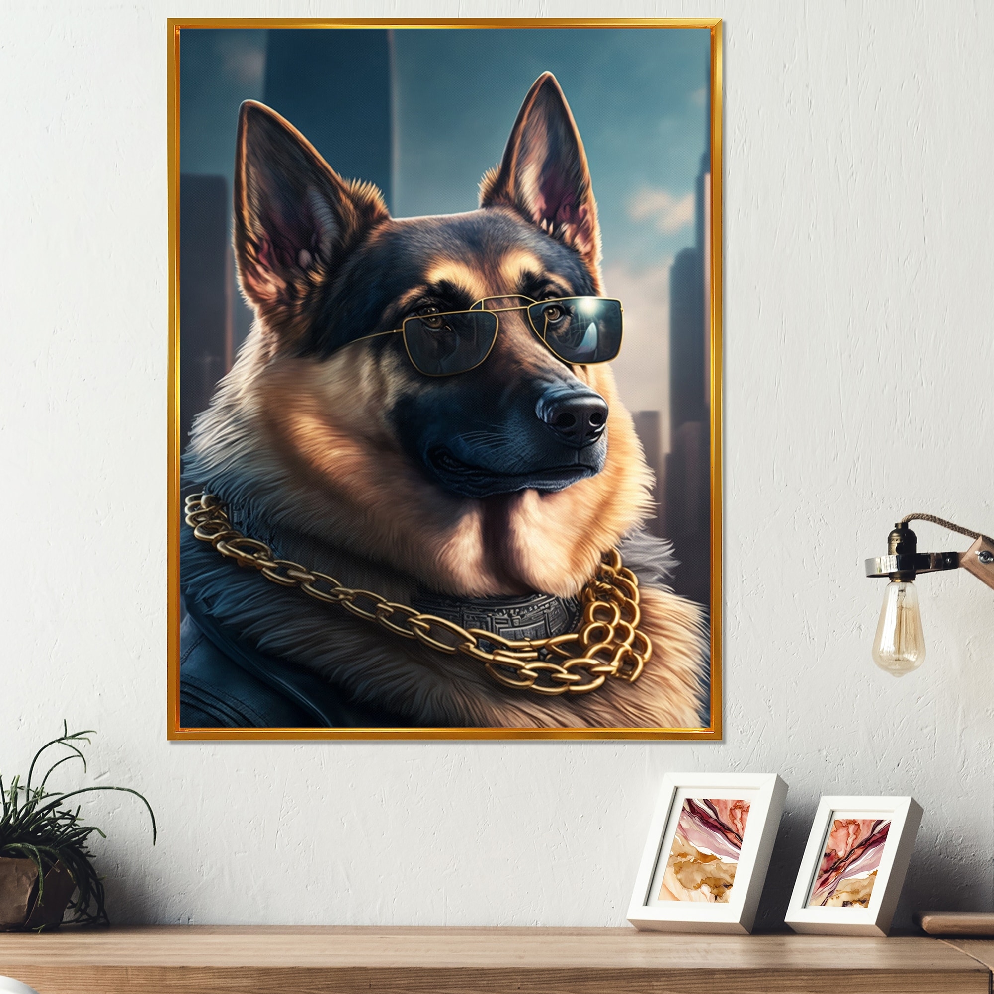 Designart "German Shepherd Gangster in NYC I" Animals Framed Canvas Art Print