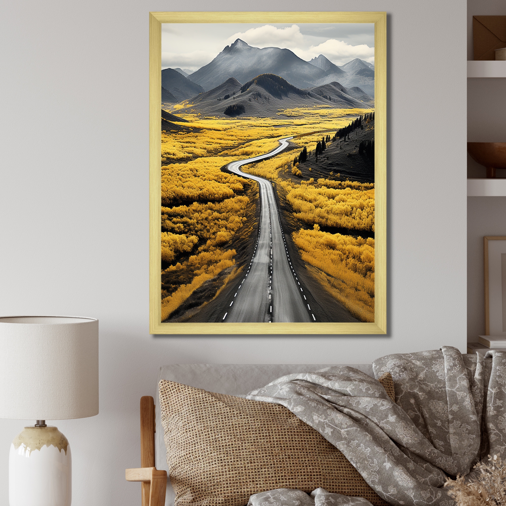 Designart "Road In the Yellow Wilderness" Road Framed Wall Art Living Room