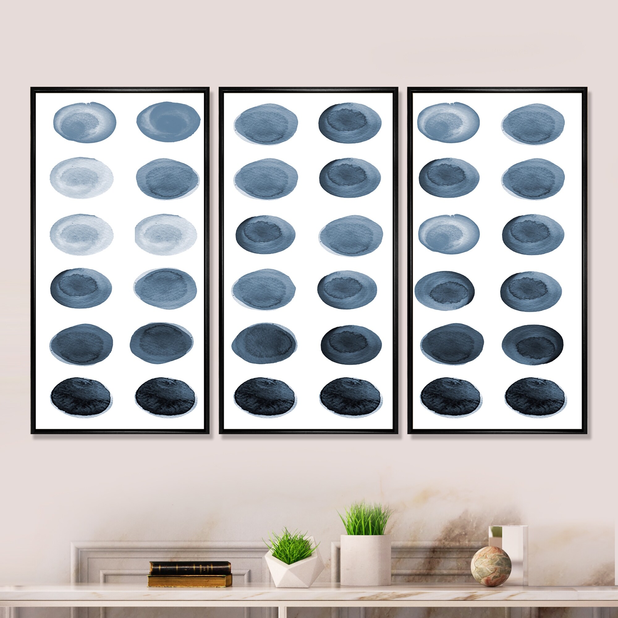 Designart "Circle Grid in Shades of Grey" Modern Framed Art Prints Set of 3 - 4 Colors of Frames