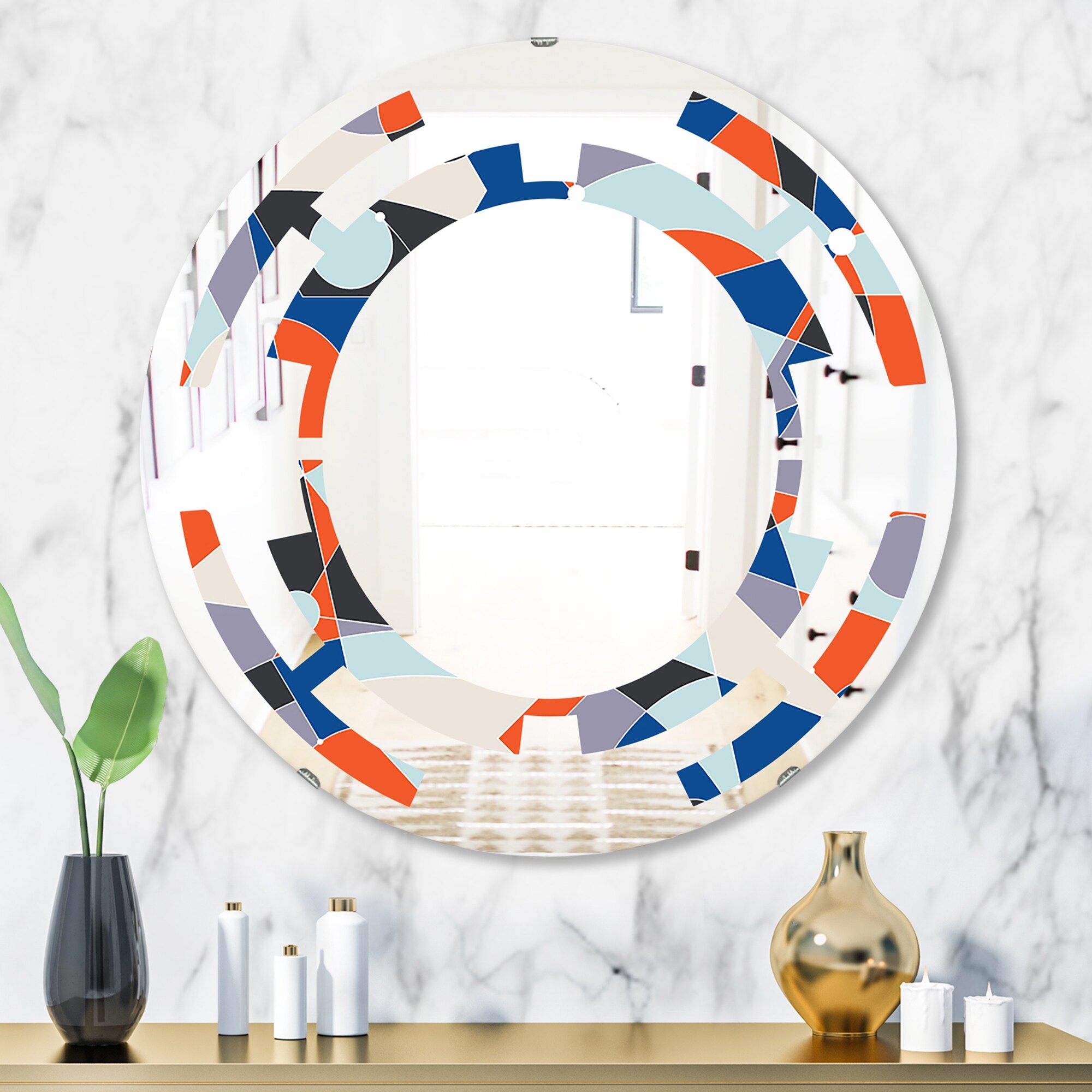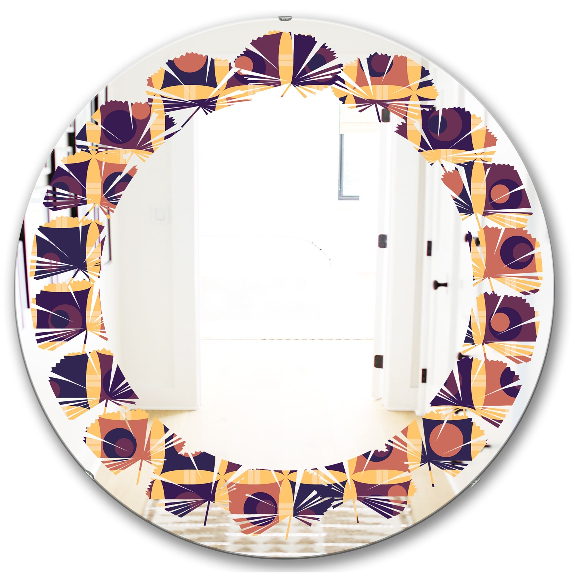 Designart 'Retro Grid in Orange' Printed Modern Round or Oval Wall Mirror - Leaves