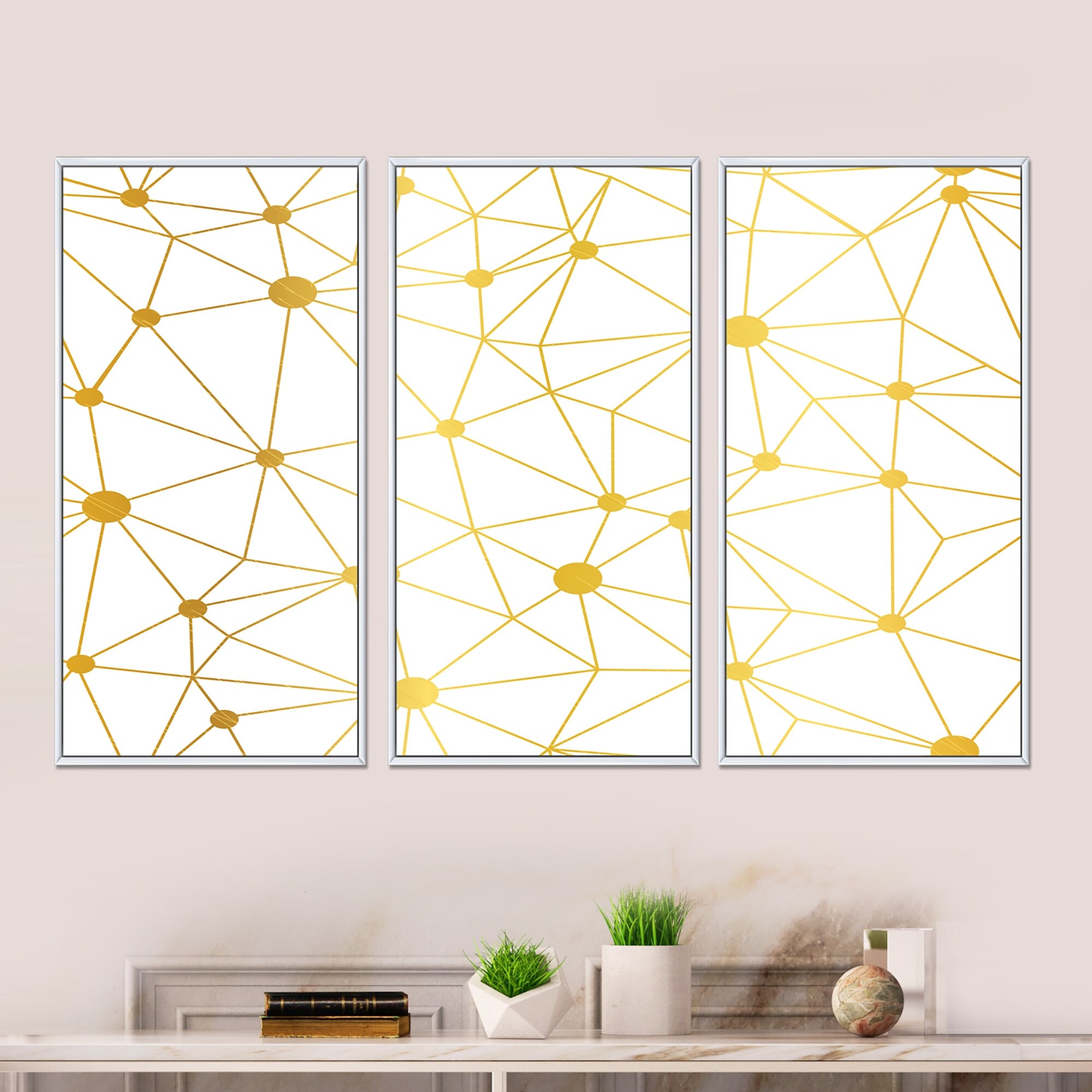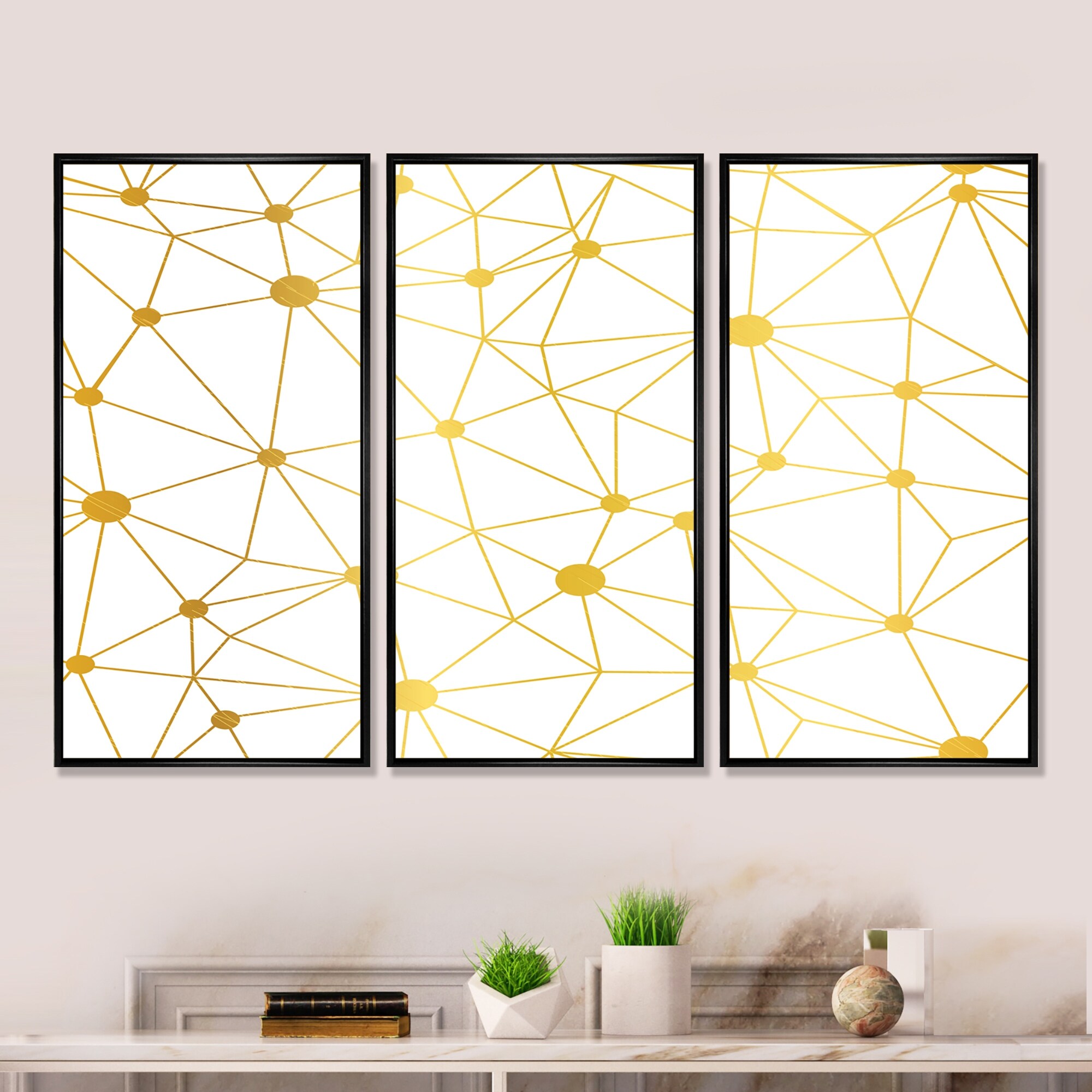 Designart "Golden Grid I" Mid-Century Modern Framed Artwork Set of 3 - 4 Colors of Frames