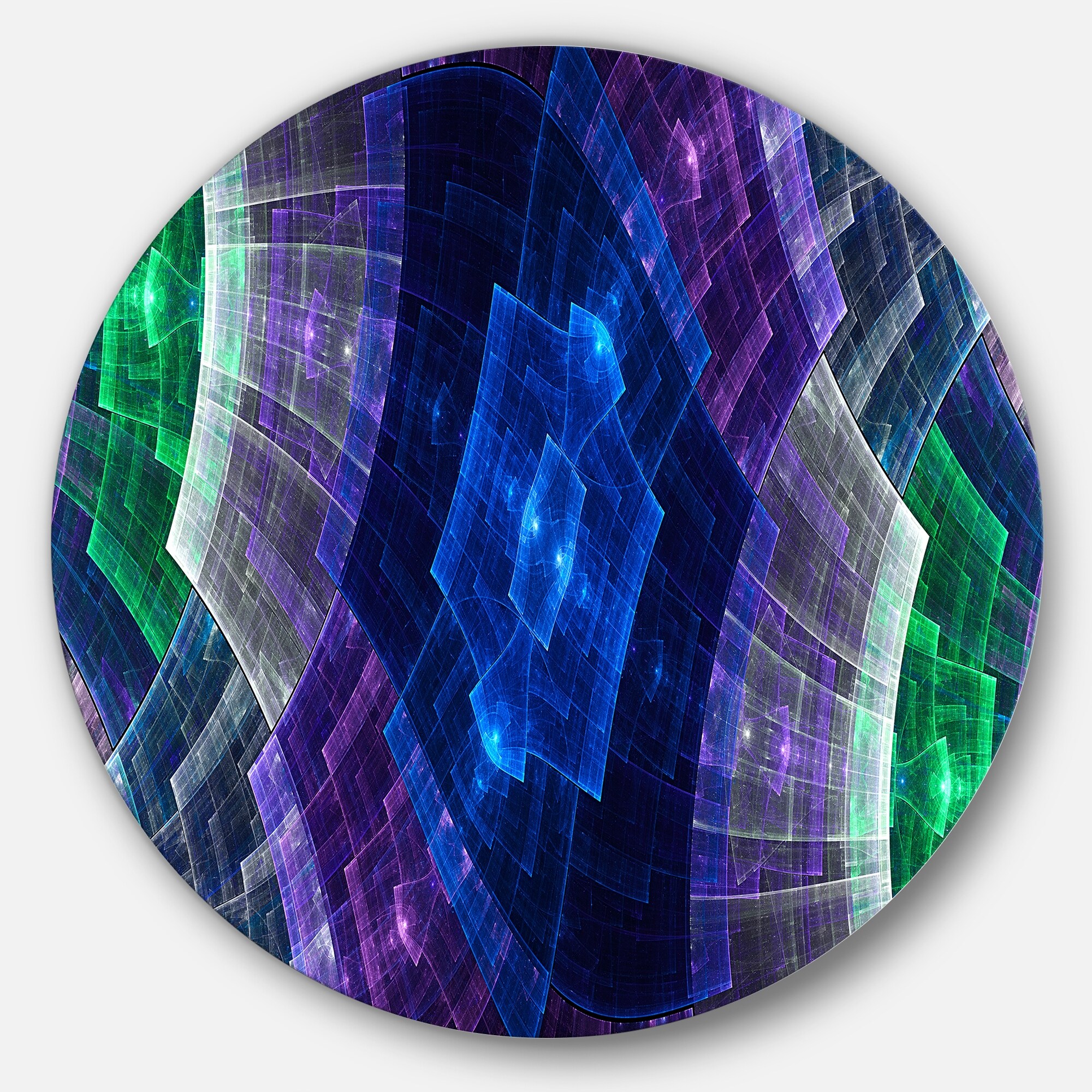 Designart 'Blue and Green Fractal Flower Grid' Abstract Large Disc Metal Wall art