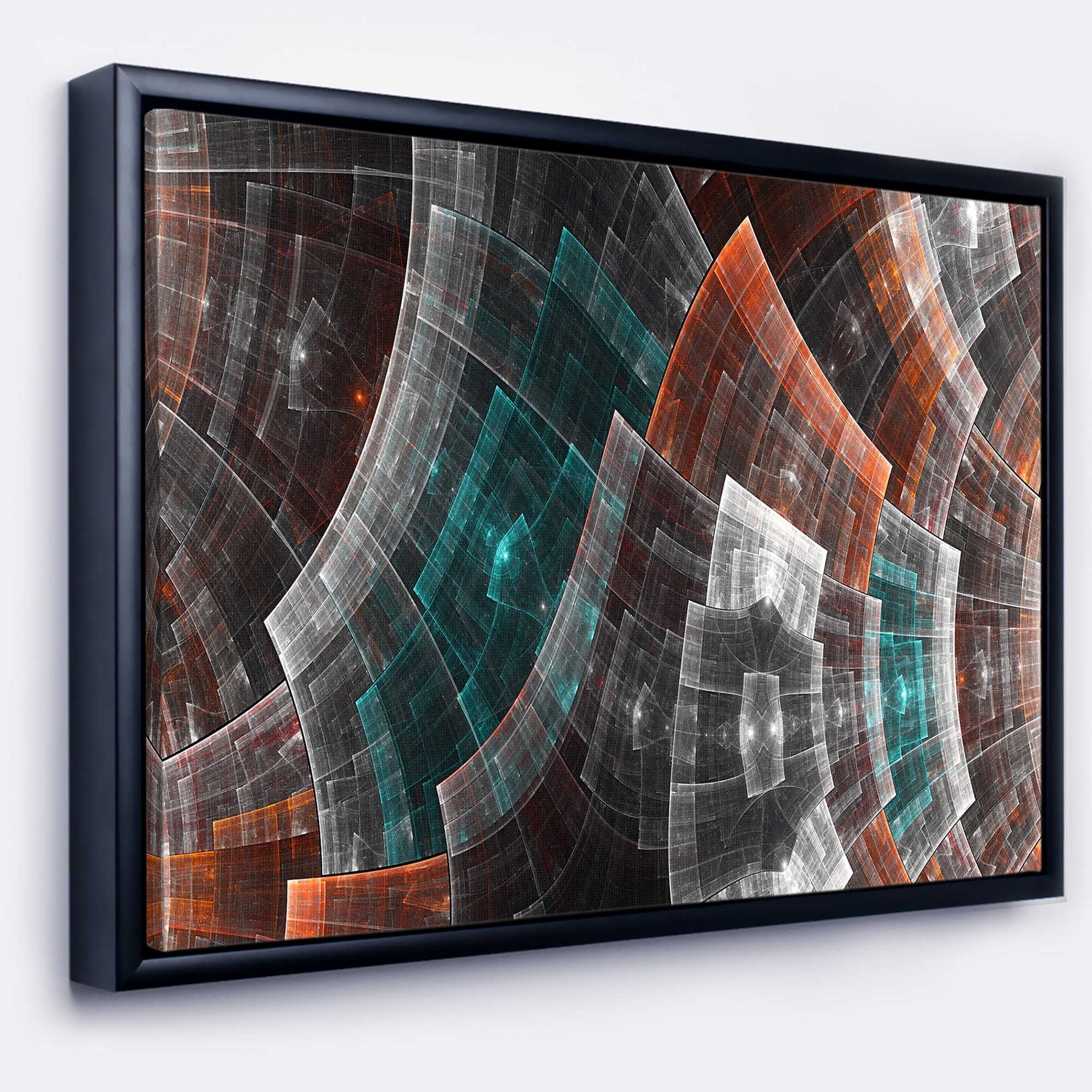 Designart "Brown and Blue Fractal Flower Grid" Abstract Art on Framed Canvas