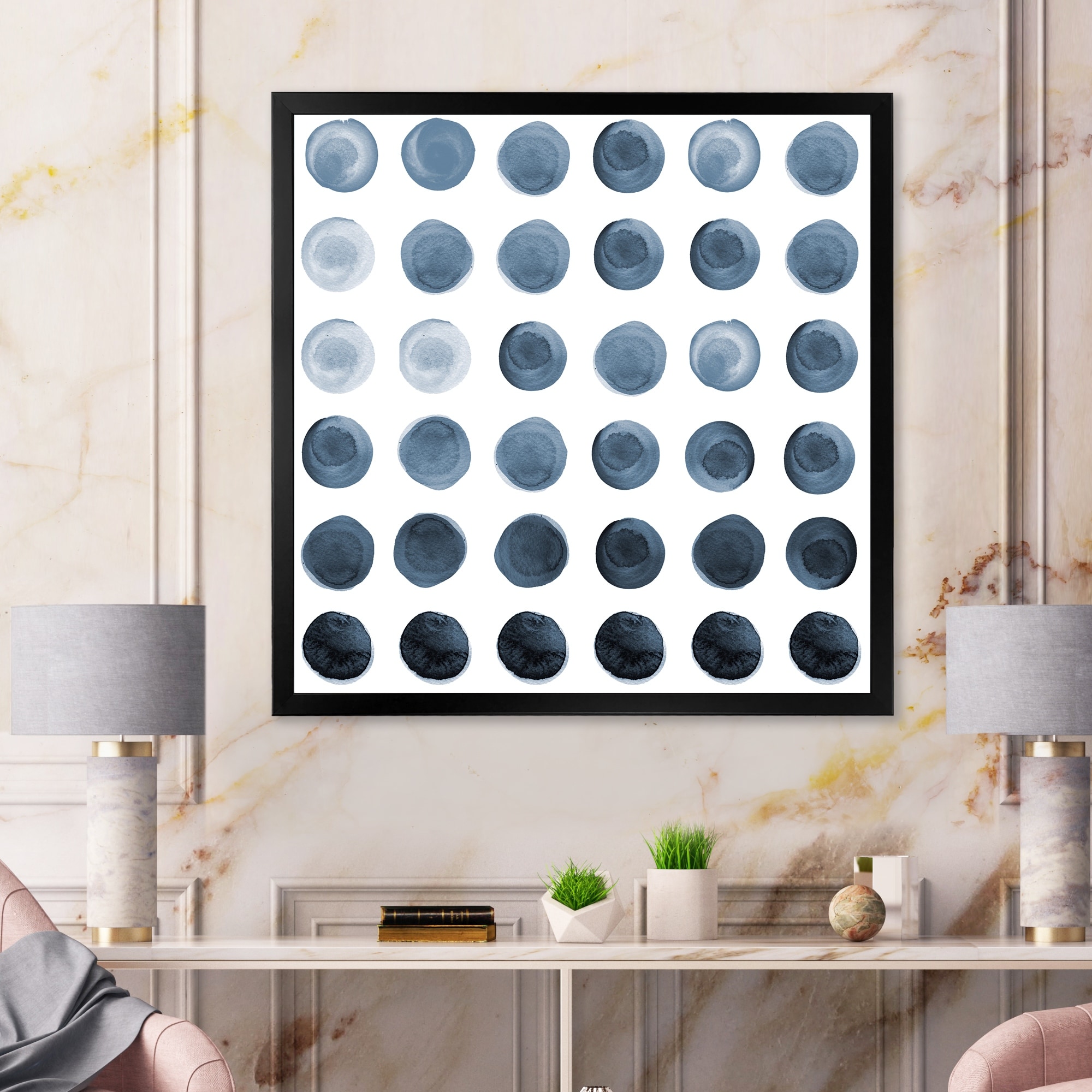 iCanvas "Watercolor Grid Navy Blue" by Nouveau Prints Framed