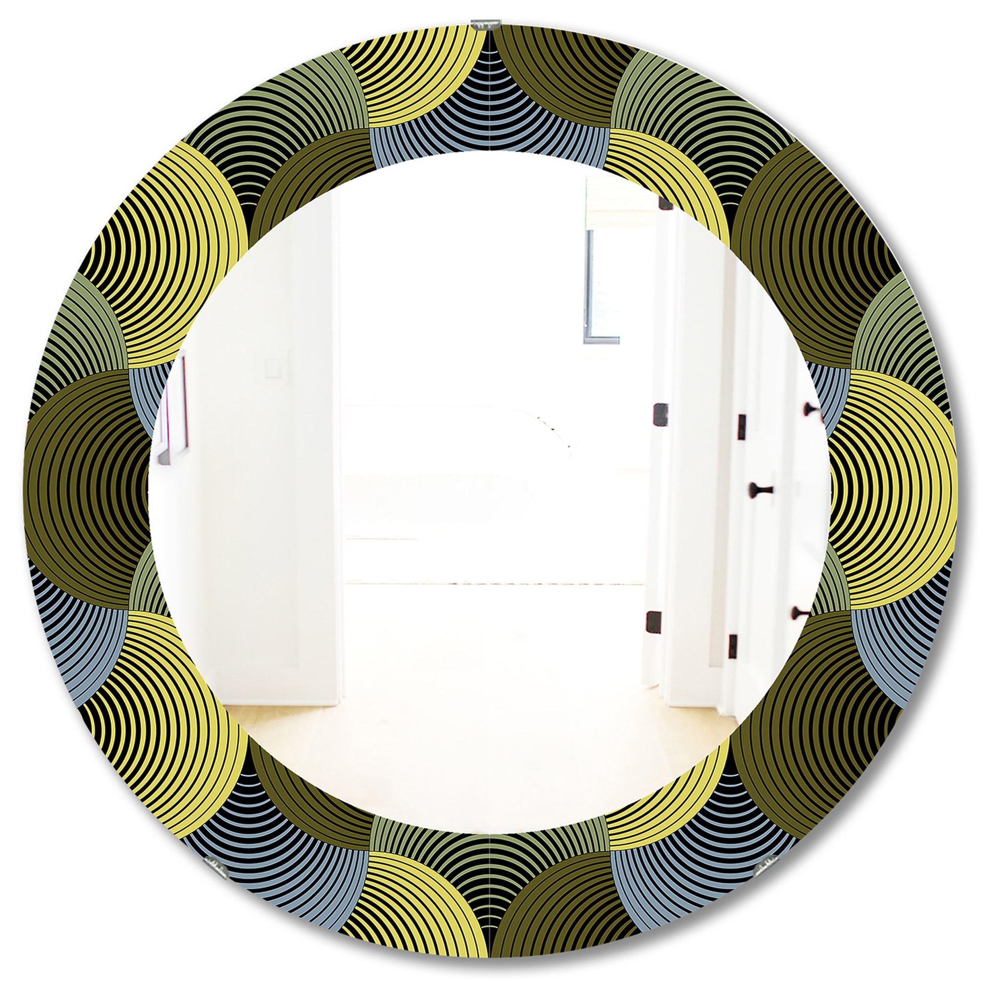 Designart 'Retro Geometric Grid IV' Printed Modern Round or Oval Wall Mirror - Space