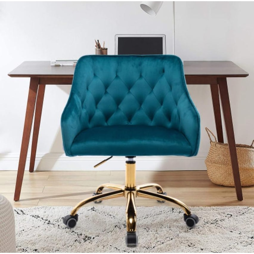 Polyester Swivel Tufted Adjustable Height Home Office Chair with Gold Base