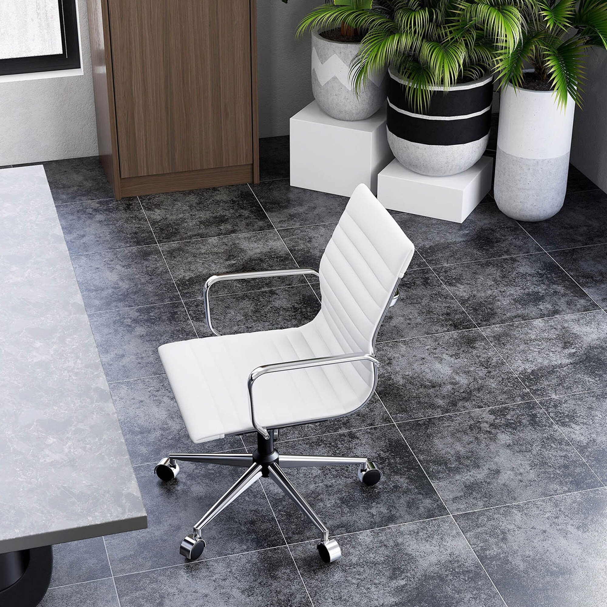 LeisureMod Benmar Mid-Back Swivel Leather Office Chair W/ Chrome Base