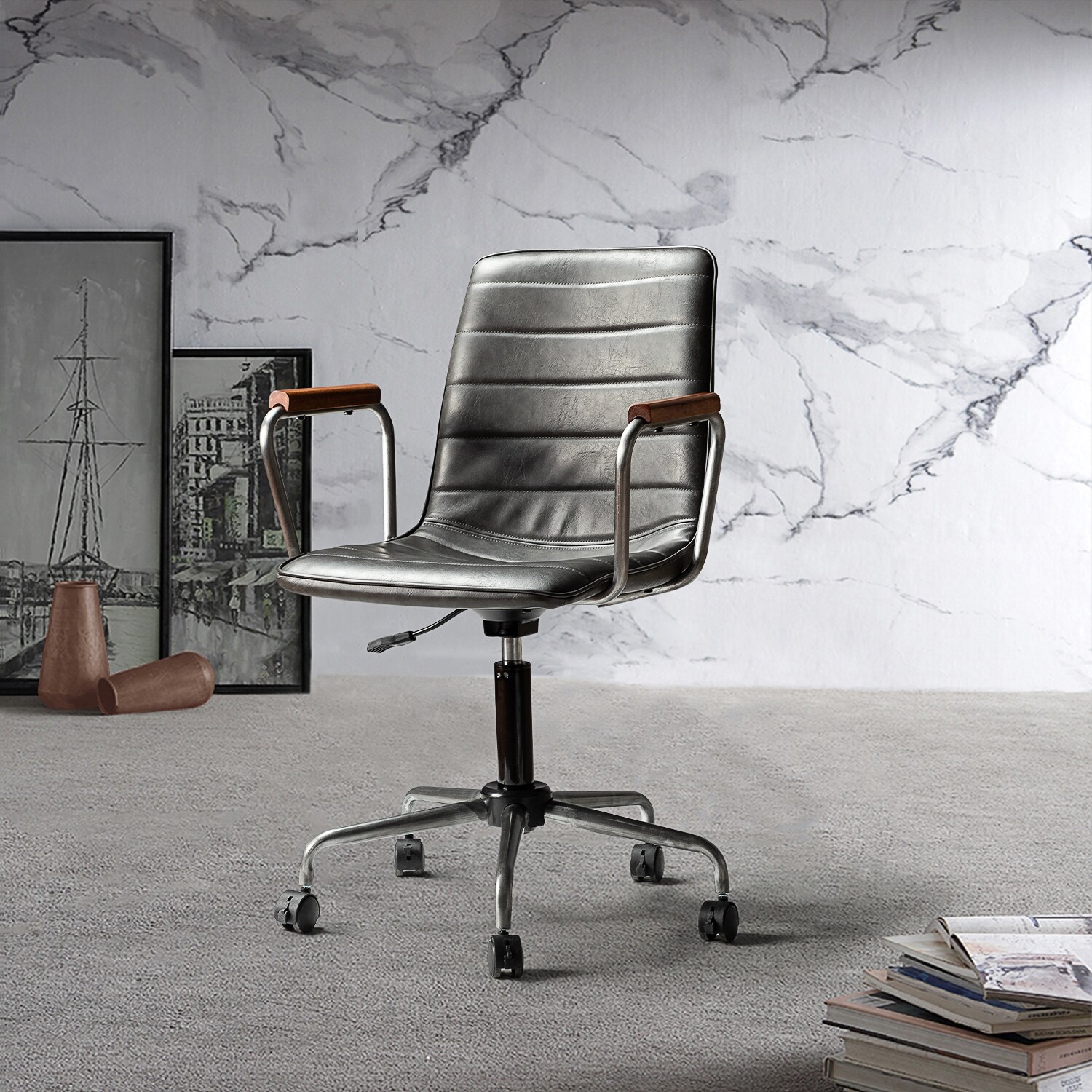LUXMOD® Faux Leather/ Silver Frame Adjustable/ Swivel Office Chair