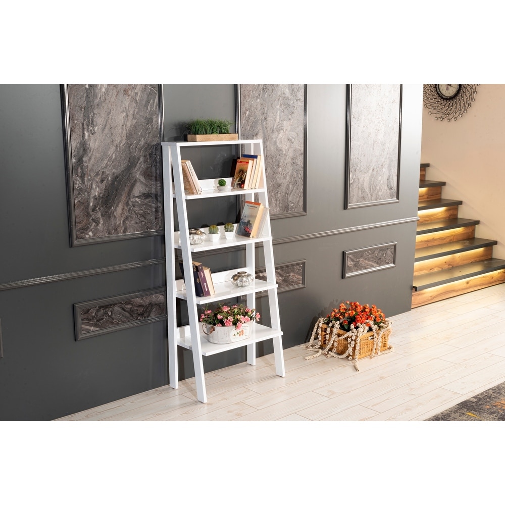 5 Tier Modern Ladder Bookshelf, Wood Frame Bookshelf for Small Spaces in your Living Rooms, Office Furniture Bookcase