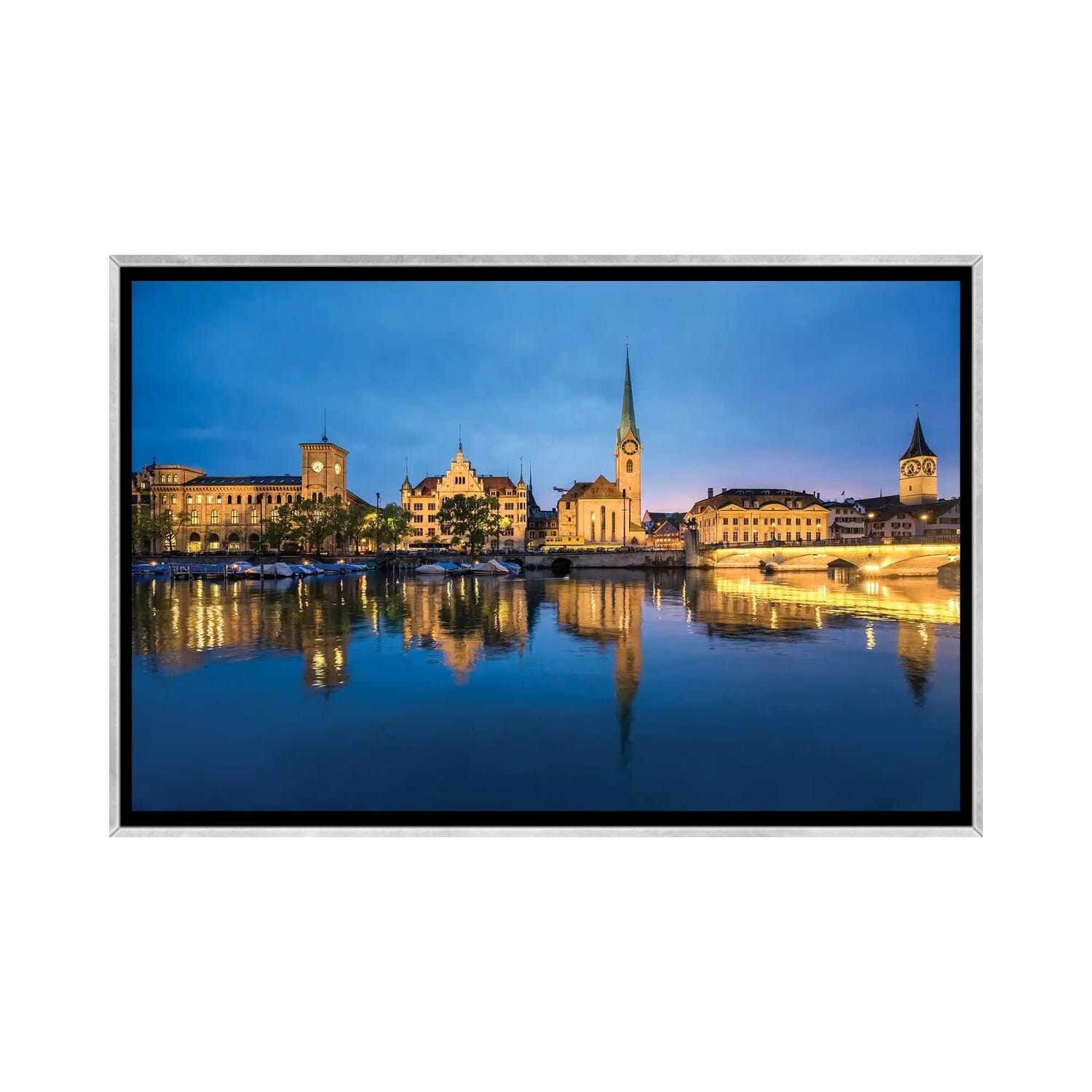 iCanvas "Old Town of Zurich At Night" by Jan Becke Framed