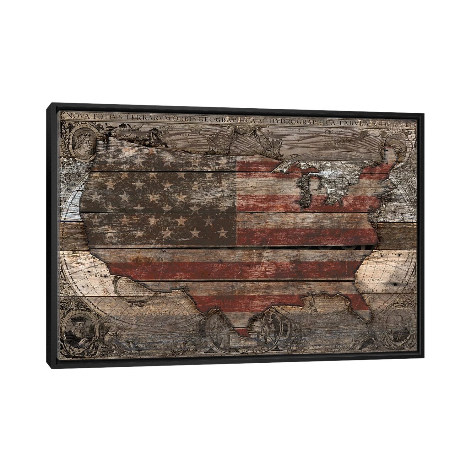iCanvas "USA Map Old Country" by Diego Tirigall Framed