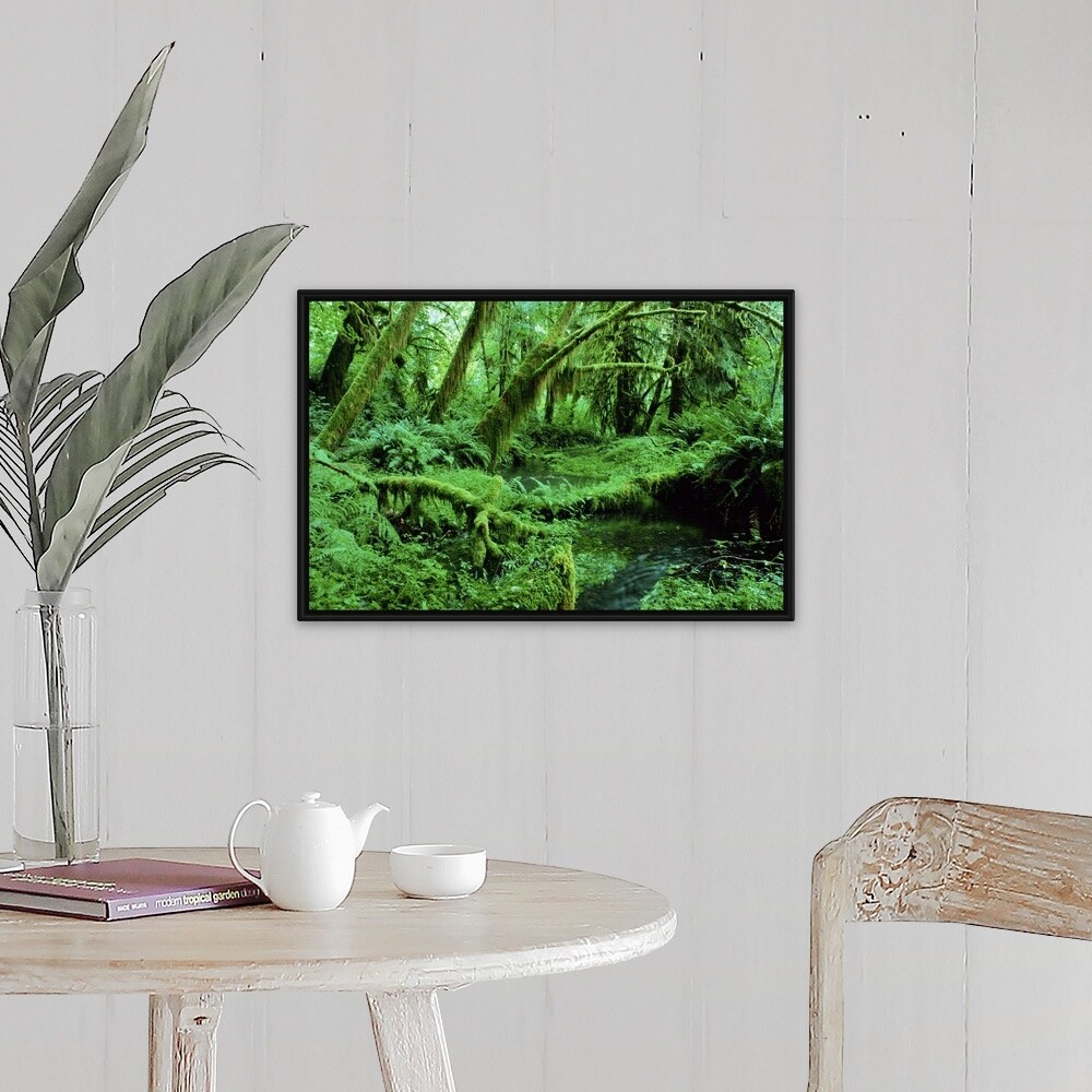 "Hoh Rain Forest Olympic National Park Washington" Black Float Frame Canvas Art