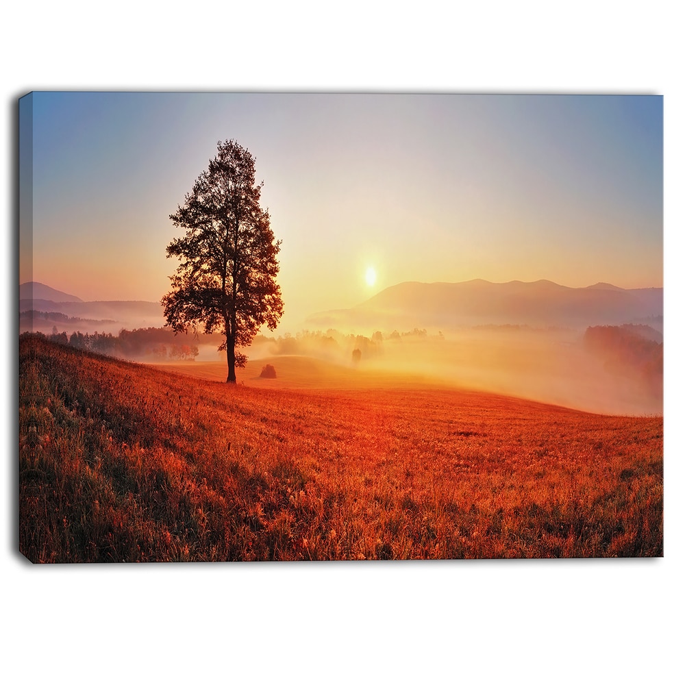 Designart - Tree and Sun - Landscape Photography Canvas Art Print - Orange