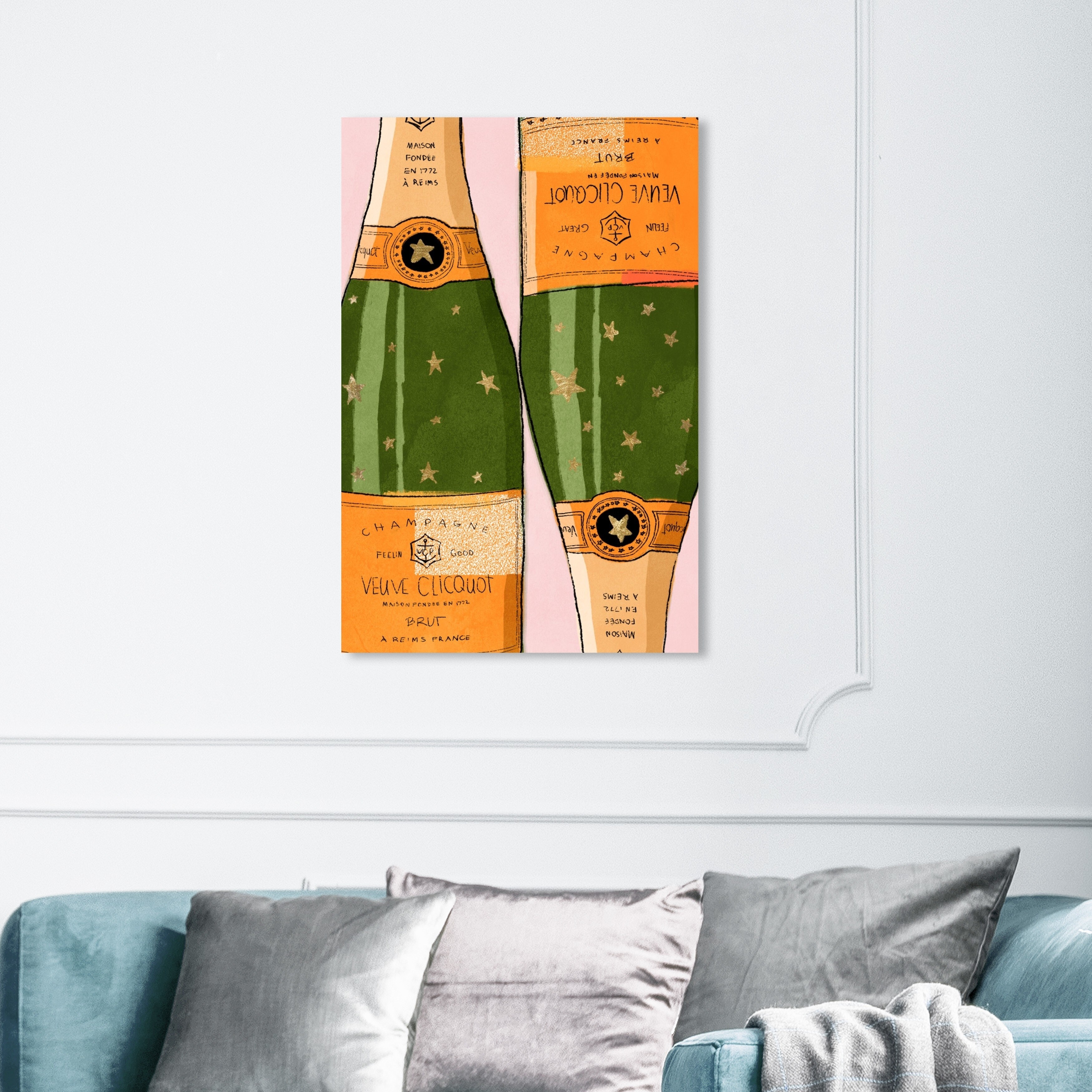 Oliver Gal Drinks and Spirits Wall Art Canvas Prints 'Shiny Champagne' Champagne - Green, Orange