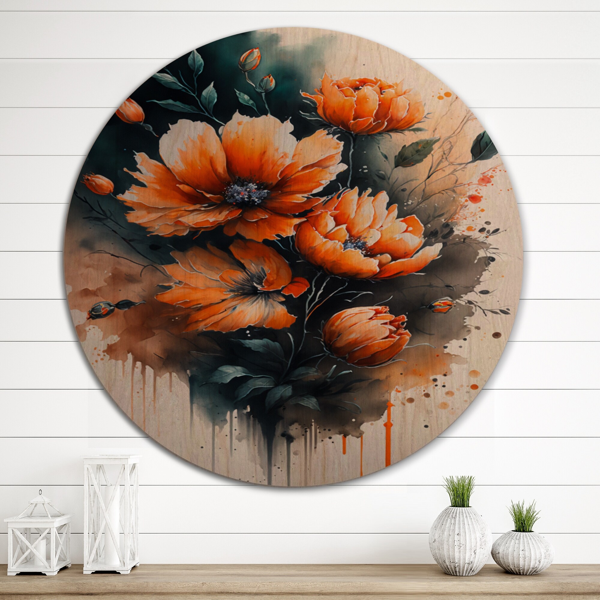Designart "Vibrant Orange Flower Bouquet " Traditional Wood Wall Art - Natural Pine Wood
