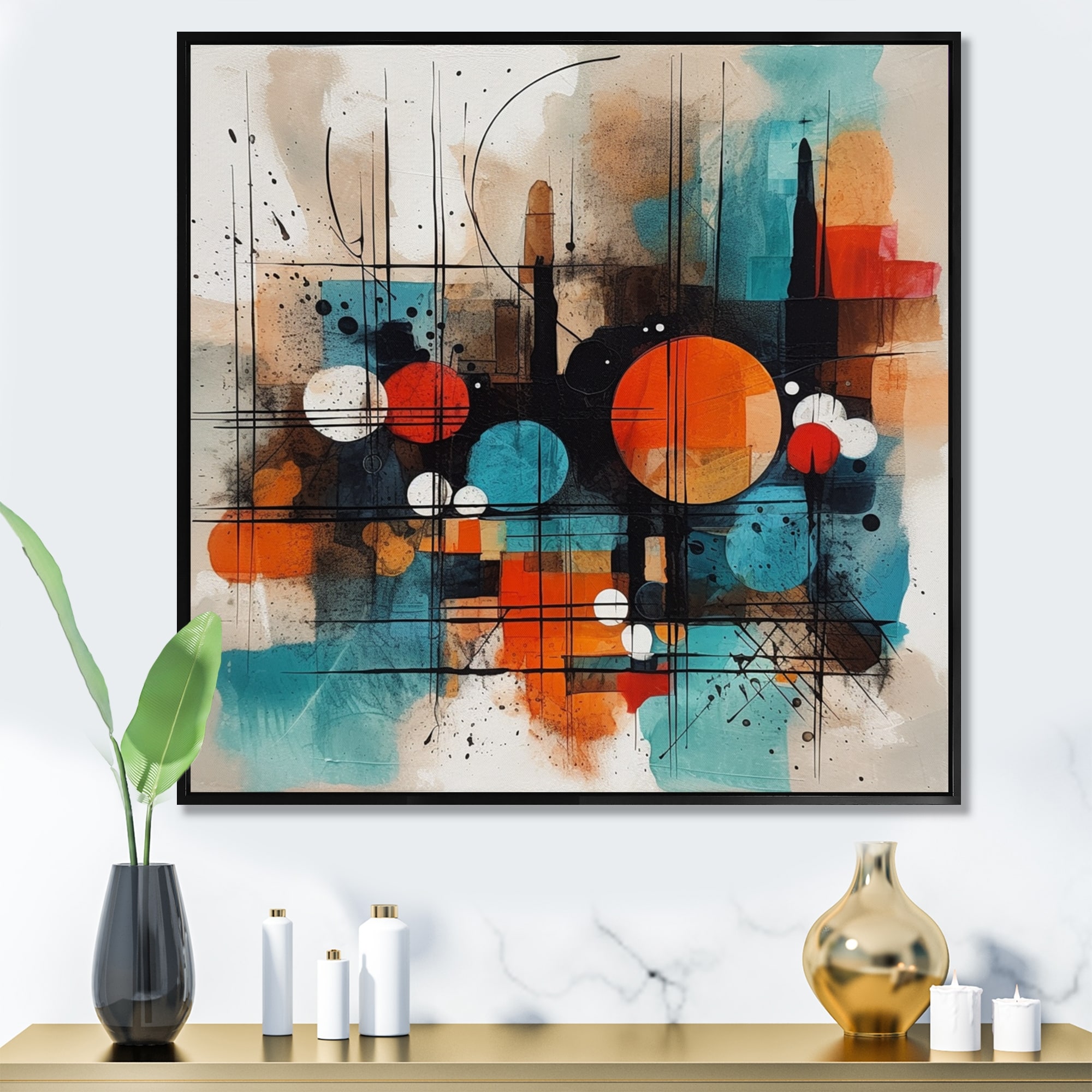 Designart "Orange Abstracted Geometric Explorations Iii" Modern Geometric Framed Canvas Prints