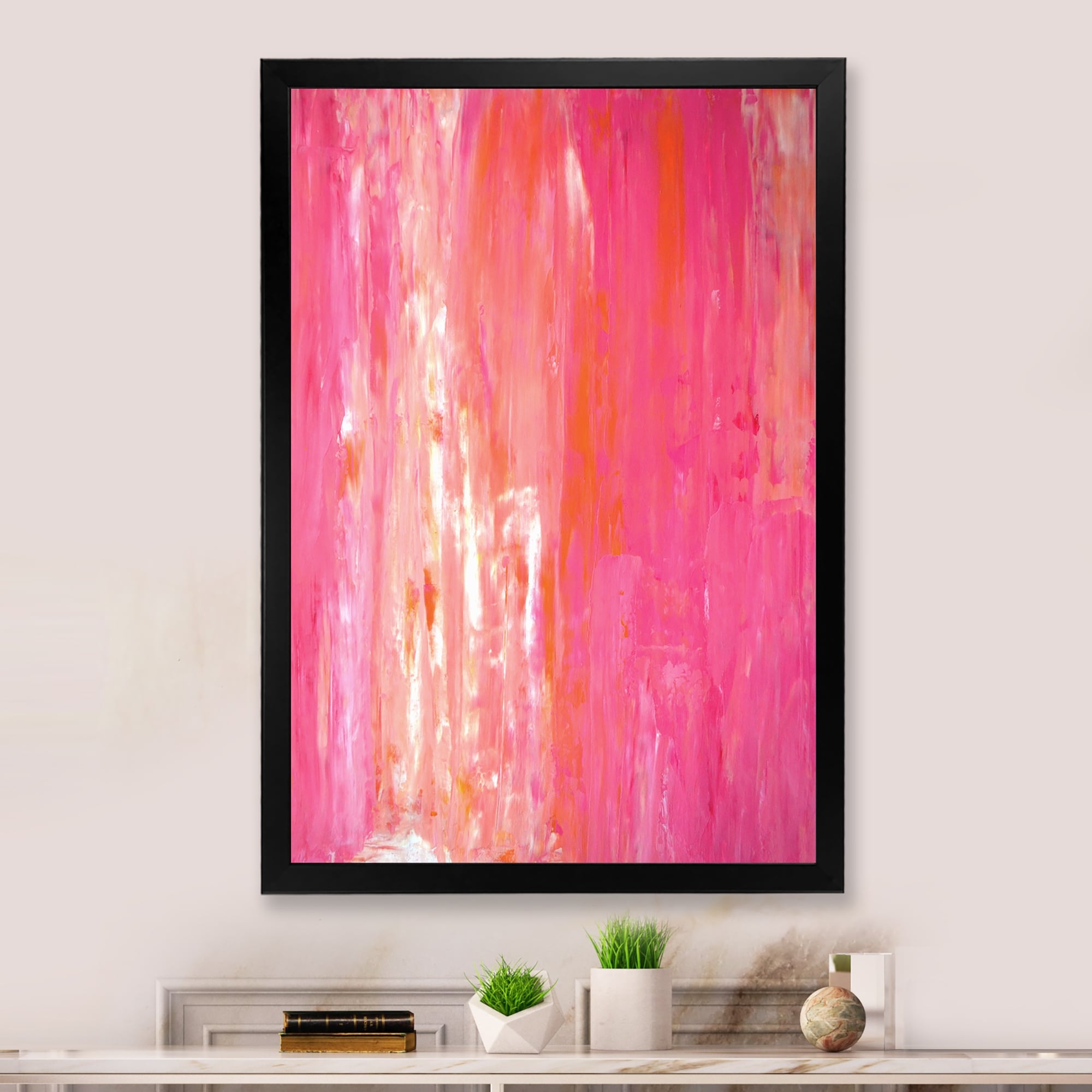 Designart "Orange And Pink Colorfields II" Modern Framed Wall Decor