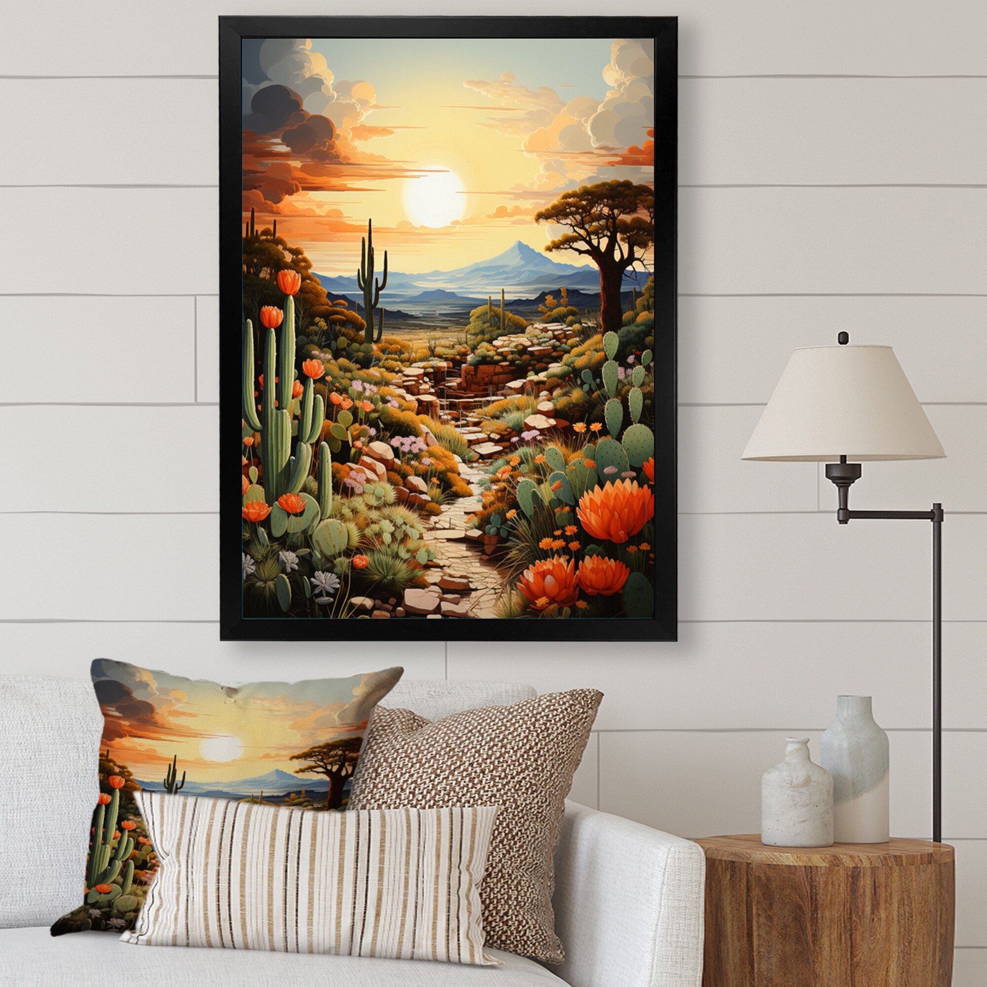 Designart "Orange Green Cactus Calm" Cactus Framed Canvas Art Print