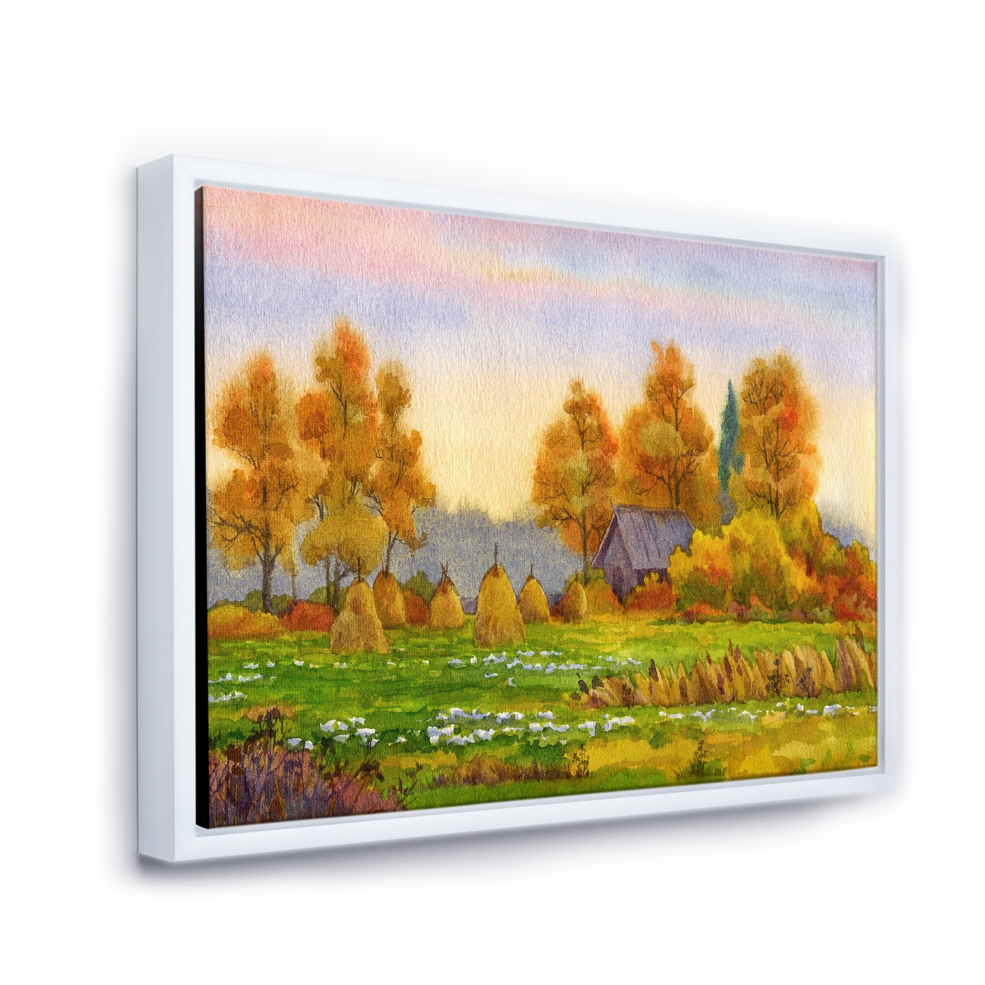 Designart "Haystacks on Orange Fields I" Lake House Framed Canvas Wall Art Print