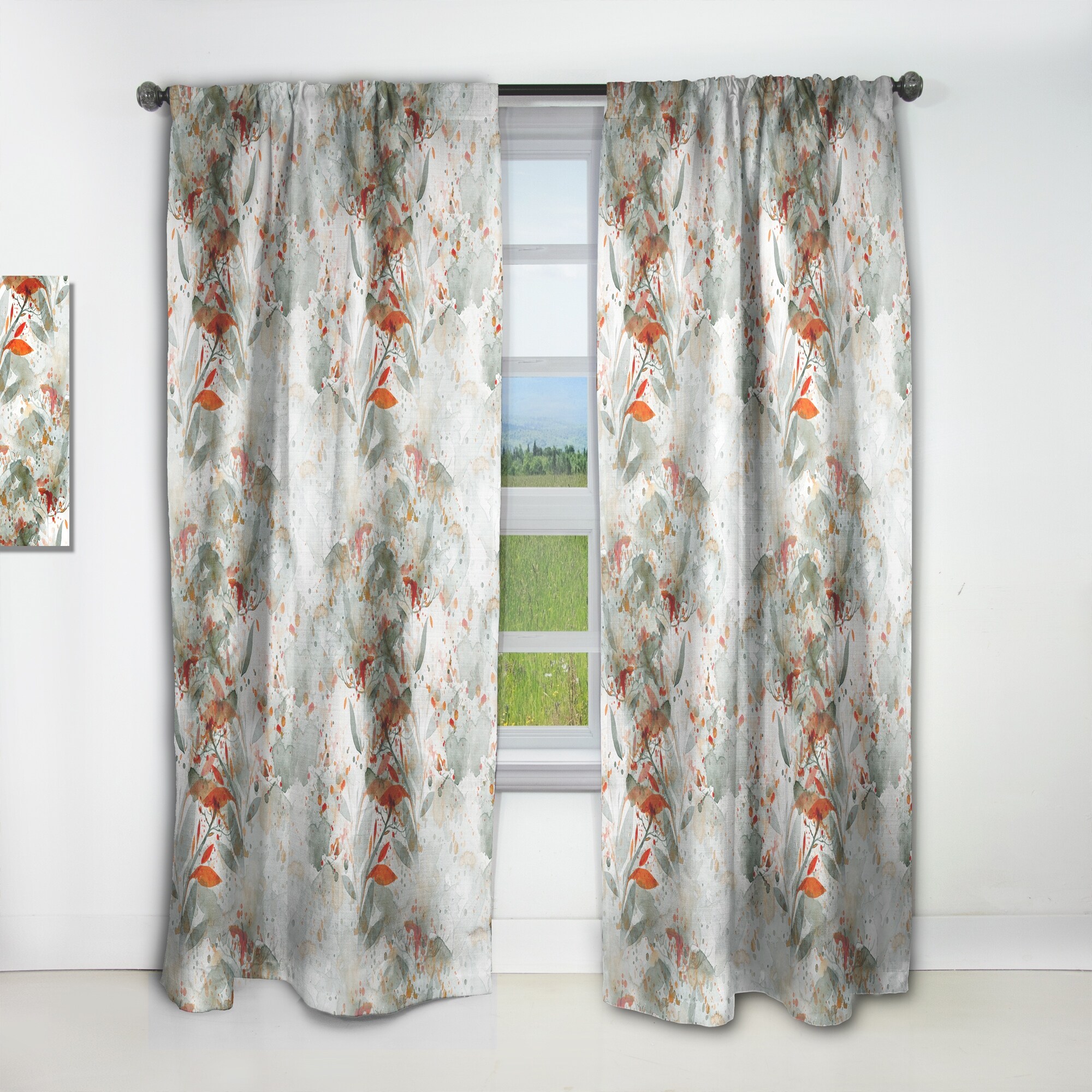 Designart 'Green and Orange Wildflowers II' Modern Curtain Single Panel