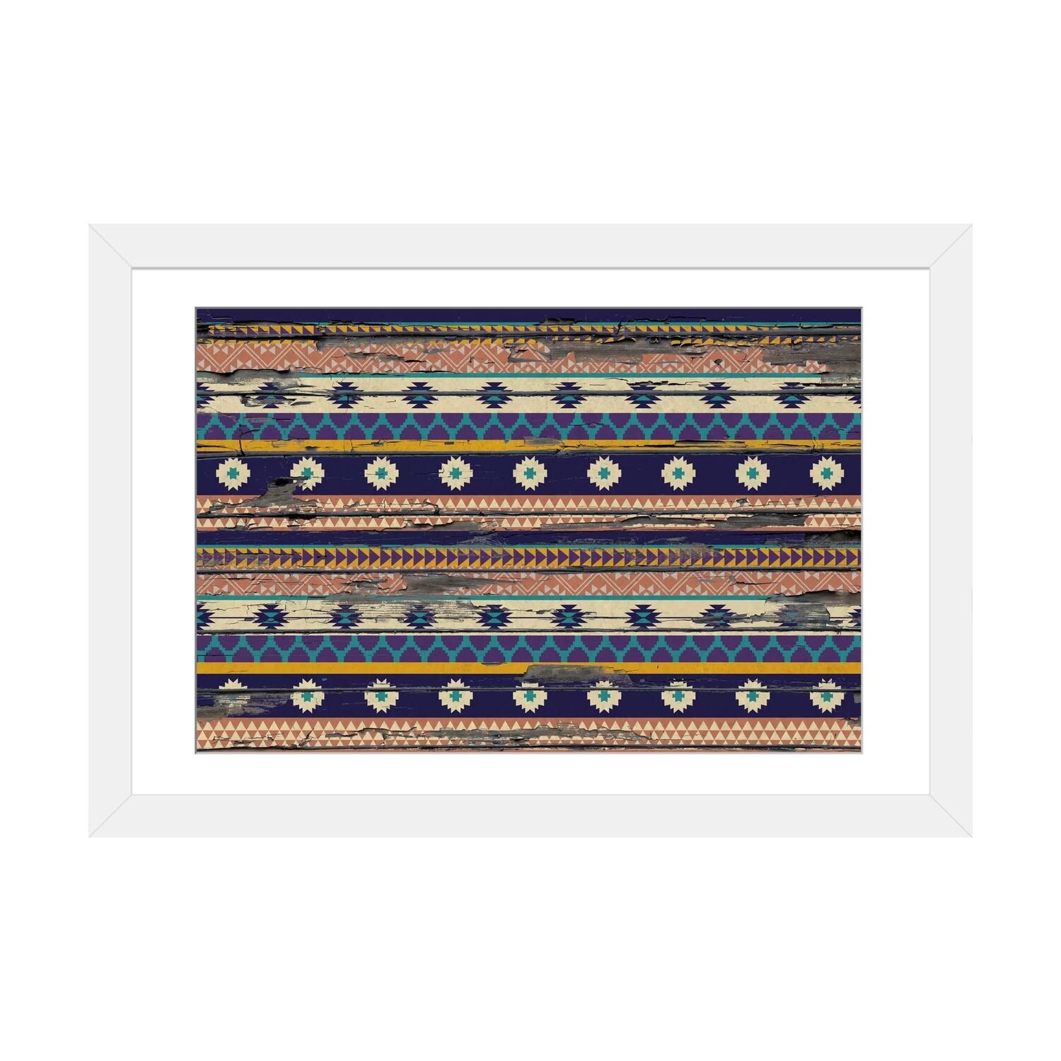 iCanvas "Blue, Orange & Purple Floral Tribal Pattern on Wood" by 5by5collective