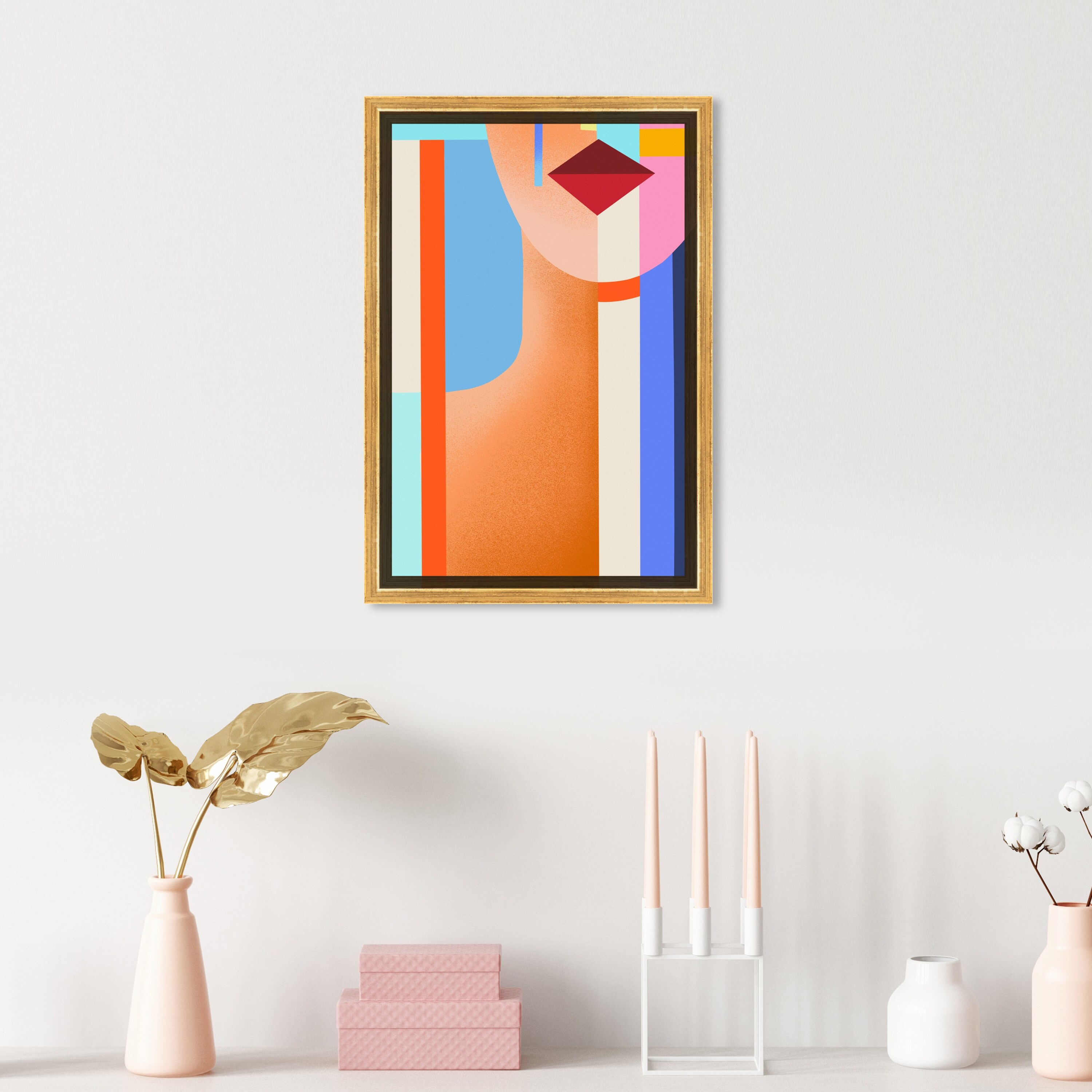 Oliver Gal 'Shaped Lady III' Abstract Wall Art Framed Canvas Print Shapes - Orange, Blue