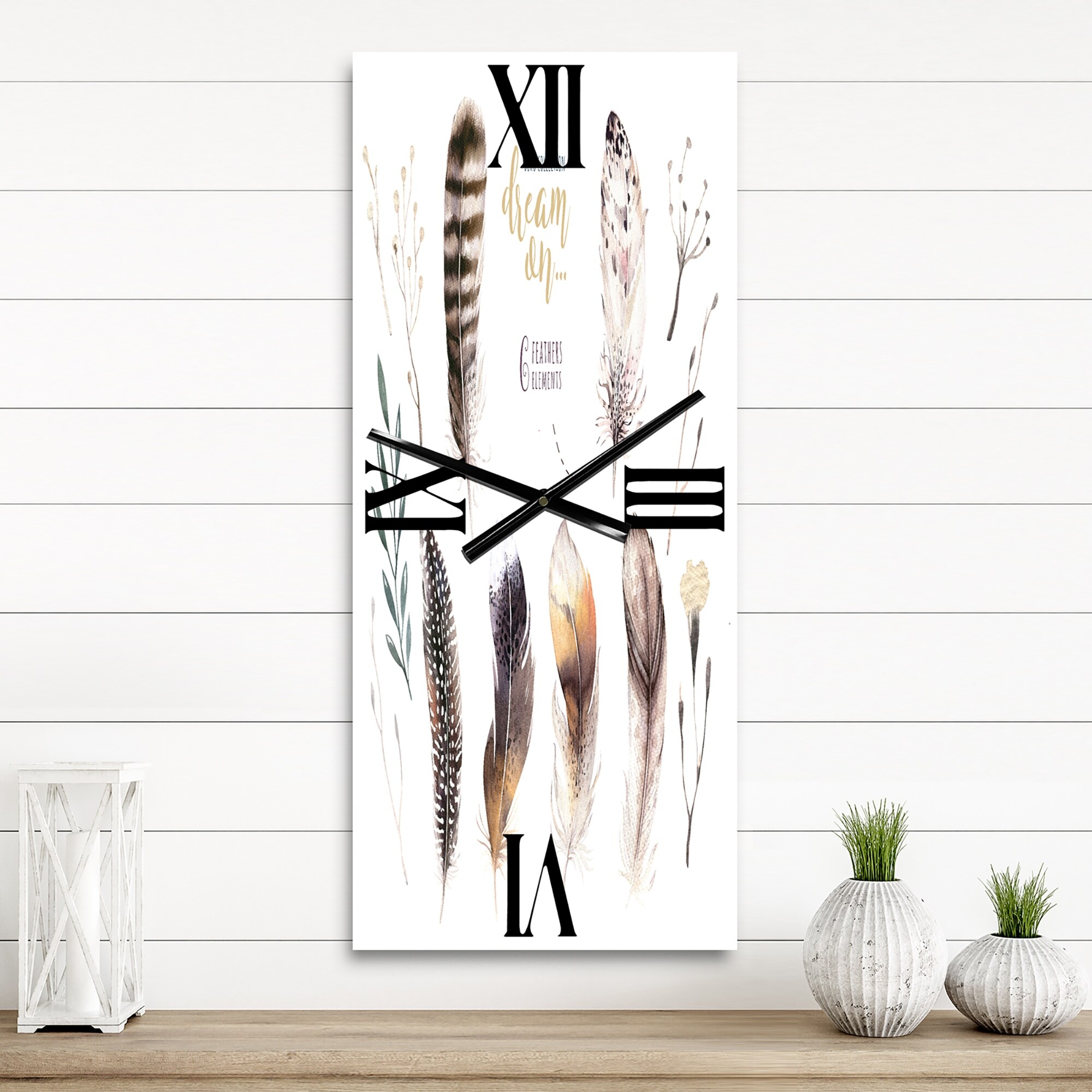 Designart 'Orange VIbrant Boho Feathers' Bohemian & Eclectic Large Wall Clock
