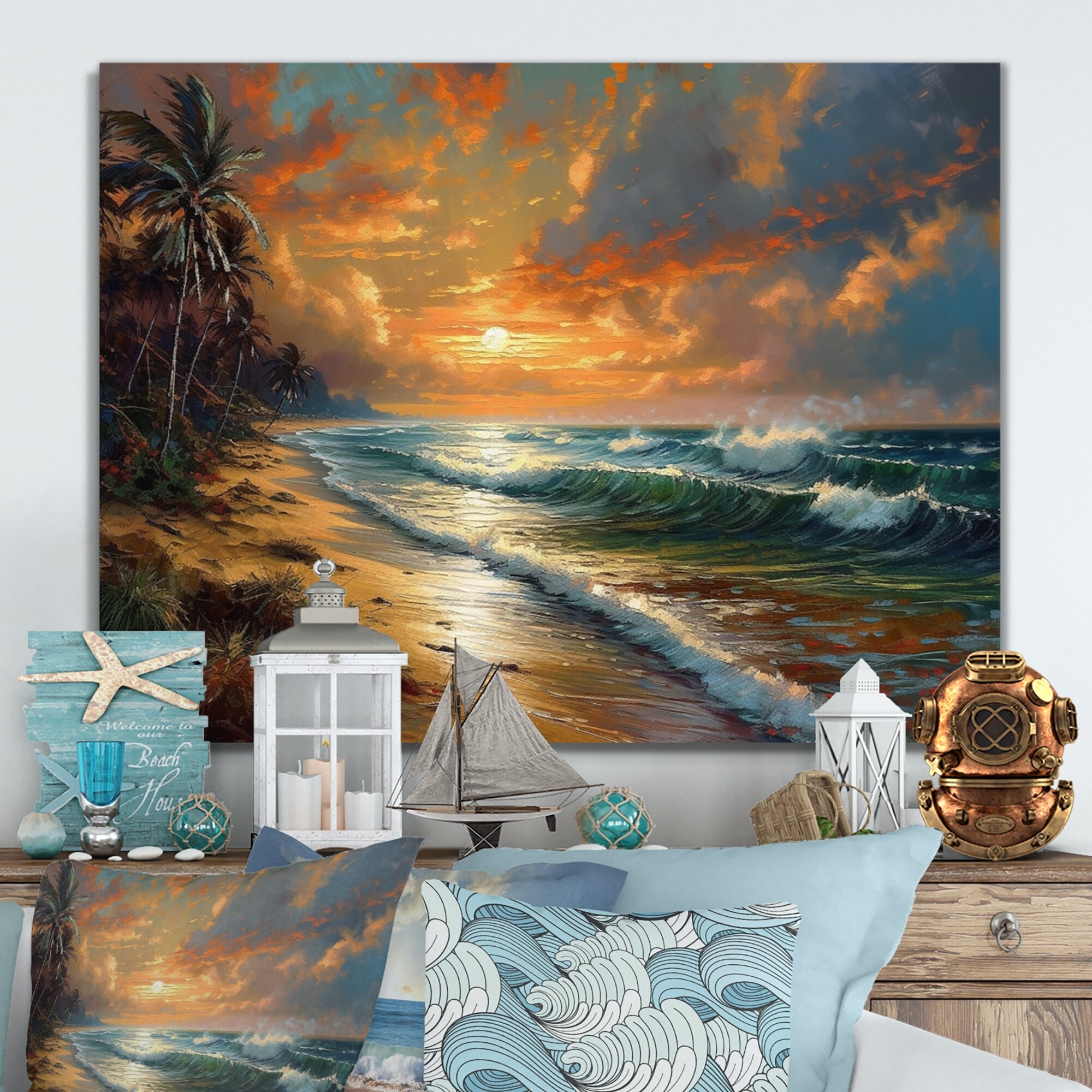 Wynwood Studio Canvas Nature and Landscape Retro Sunset Orange and Nautical & Coastal Wall Art Canvas Print