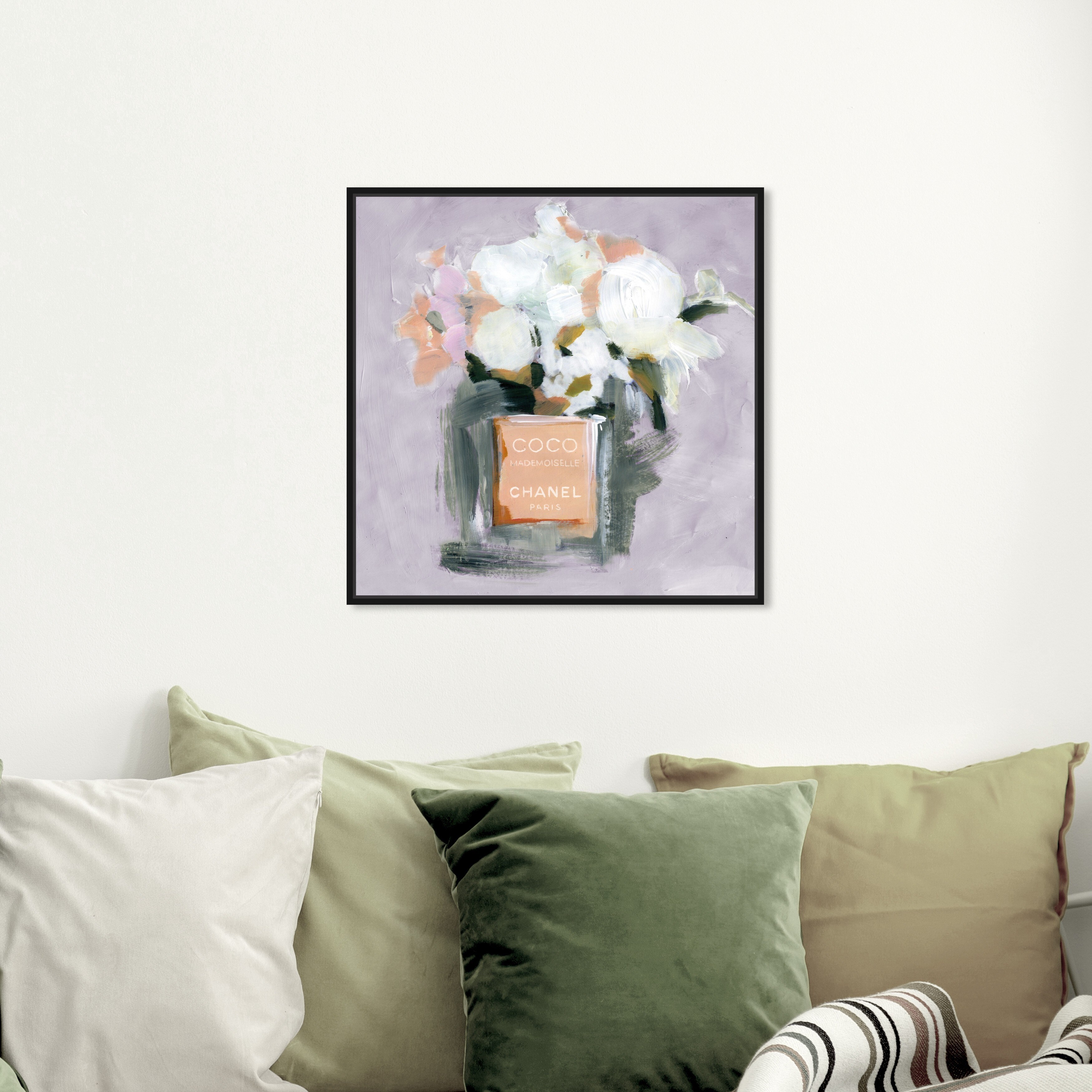 Oliver Gal Fashion and Glam Wall Art Framed Canvas Prints 'L'Eau de Rose Lavender' Perfumes - Orange, White