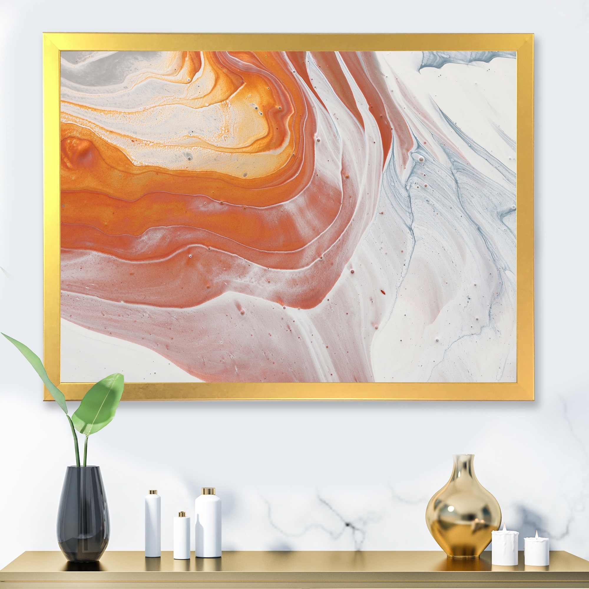 Designart "Orange White And Grey Marble Art" Modern Framed Art Print