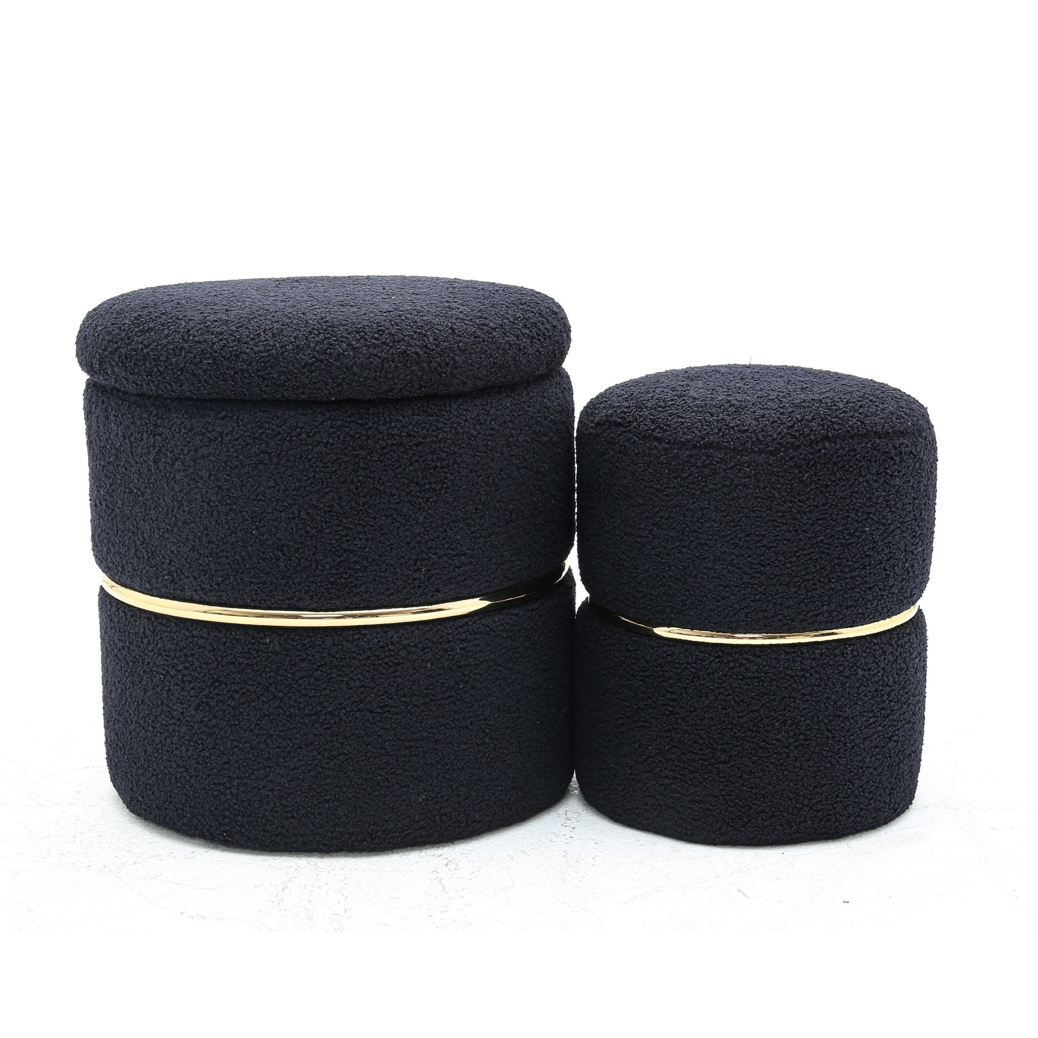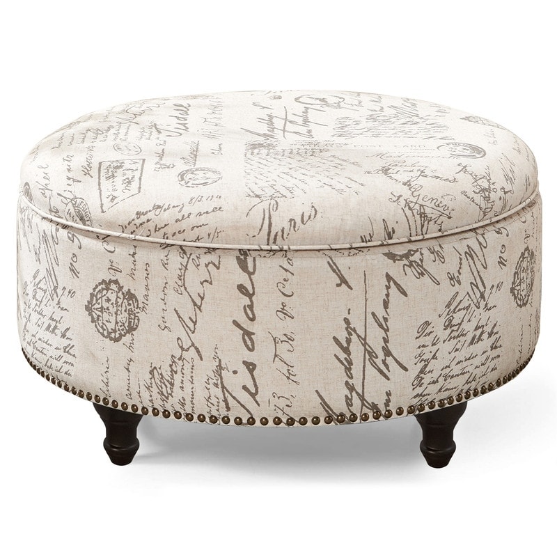 Round Fabric Upholstered Storage Ottoman with Wood Frame