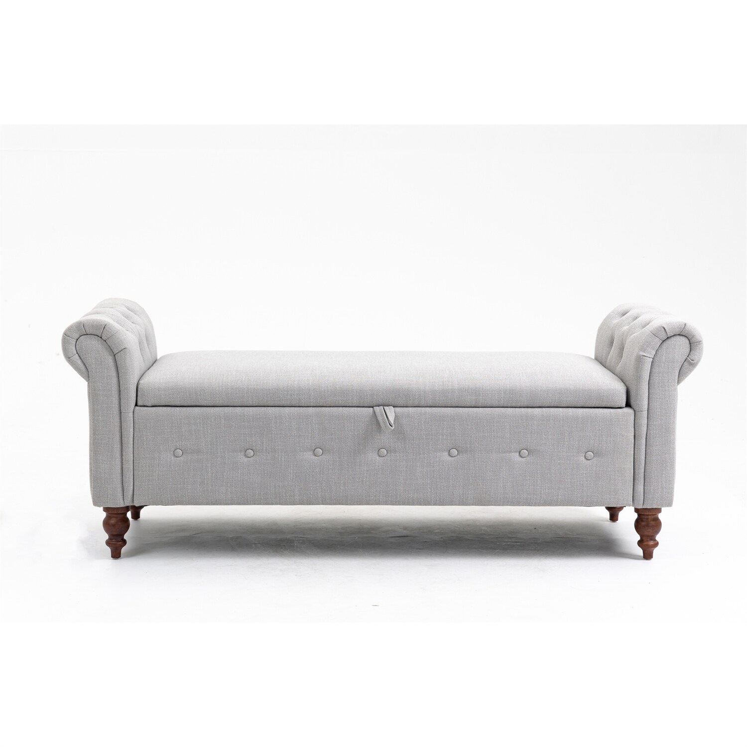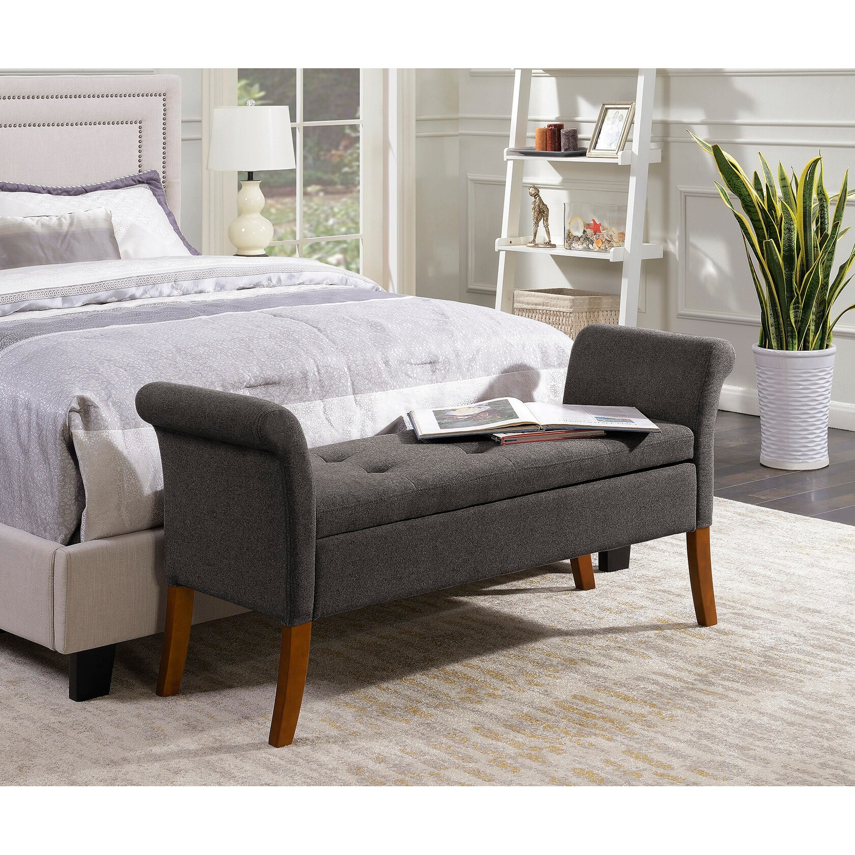 Haden Armed Light Gray Fabric Storage Bench Ottoman