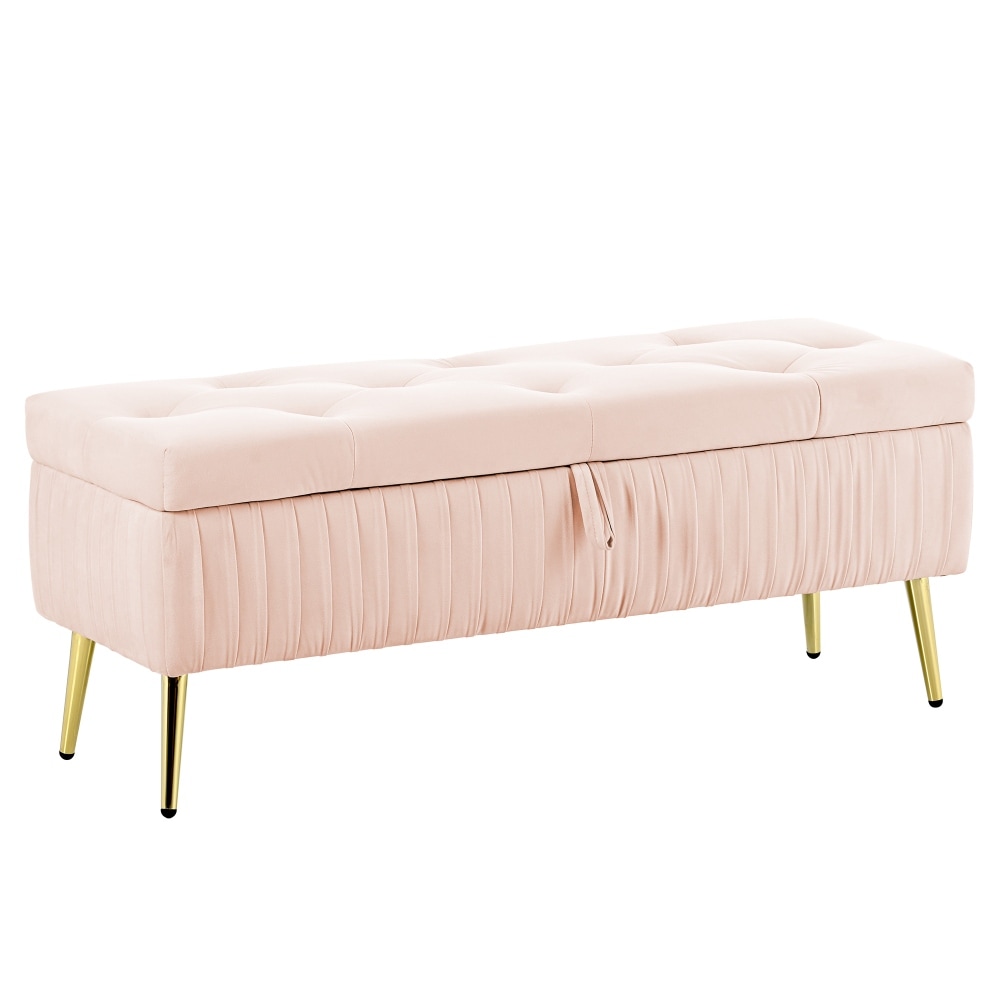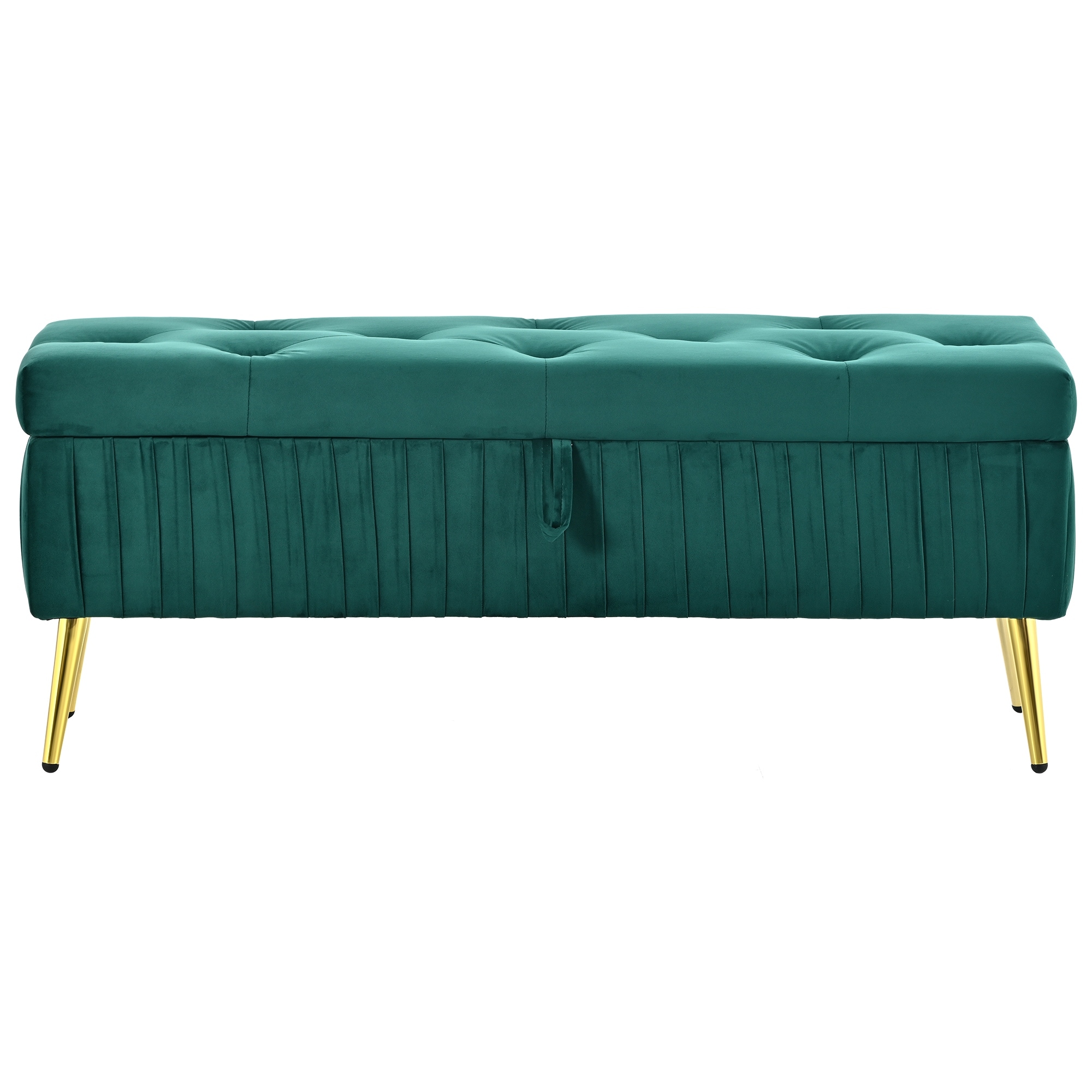 Button-Tufted Ottoman,Storage Bench with Safety Close Hinge,Upholstered Fabrics,Solid Wood Frame,Metal Legs
