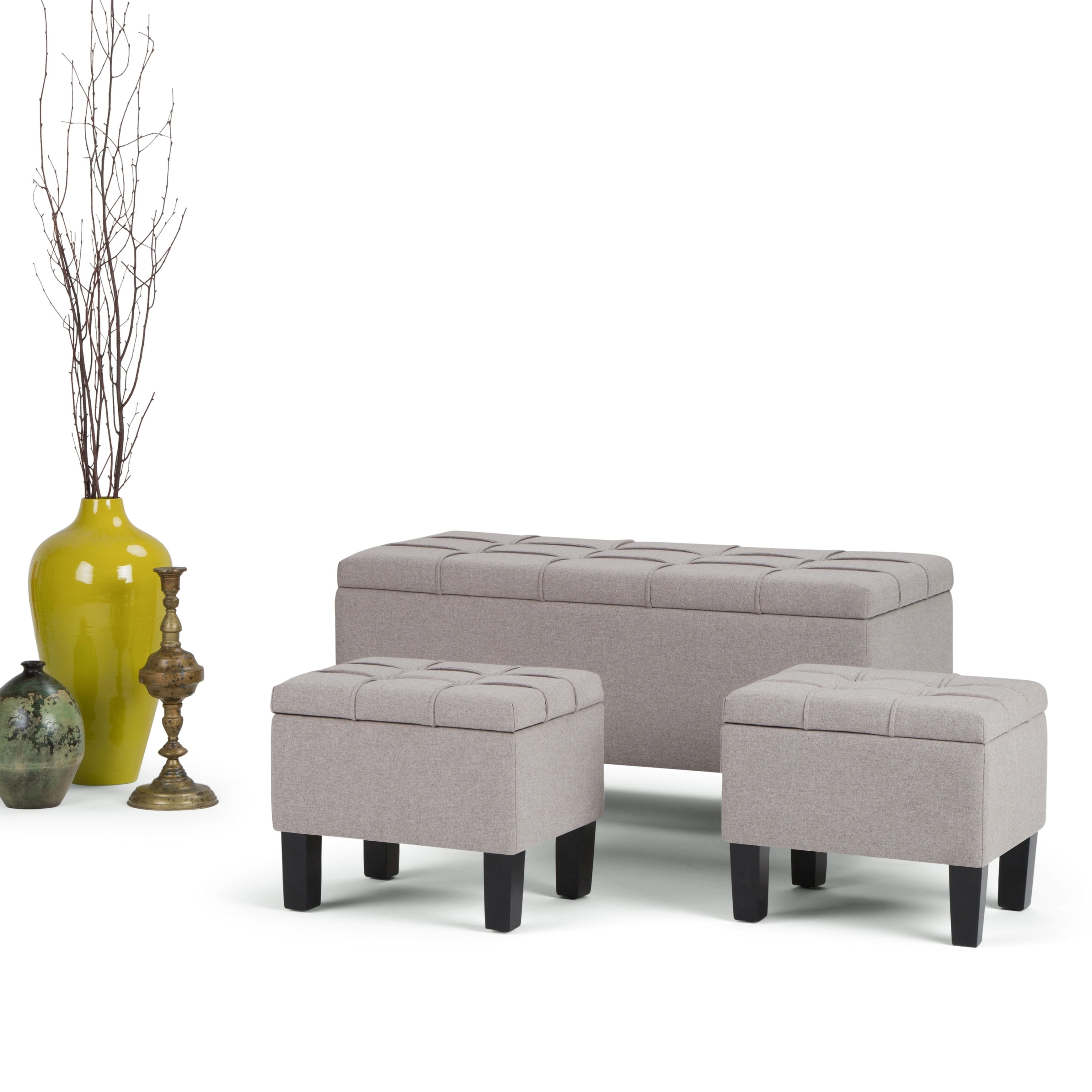 Set of 3 Upholstered Storage Ottoman with Tufted Top and Solid Wood Legs