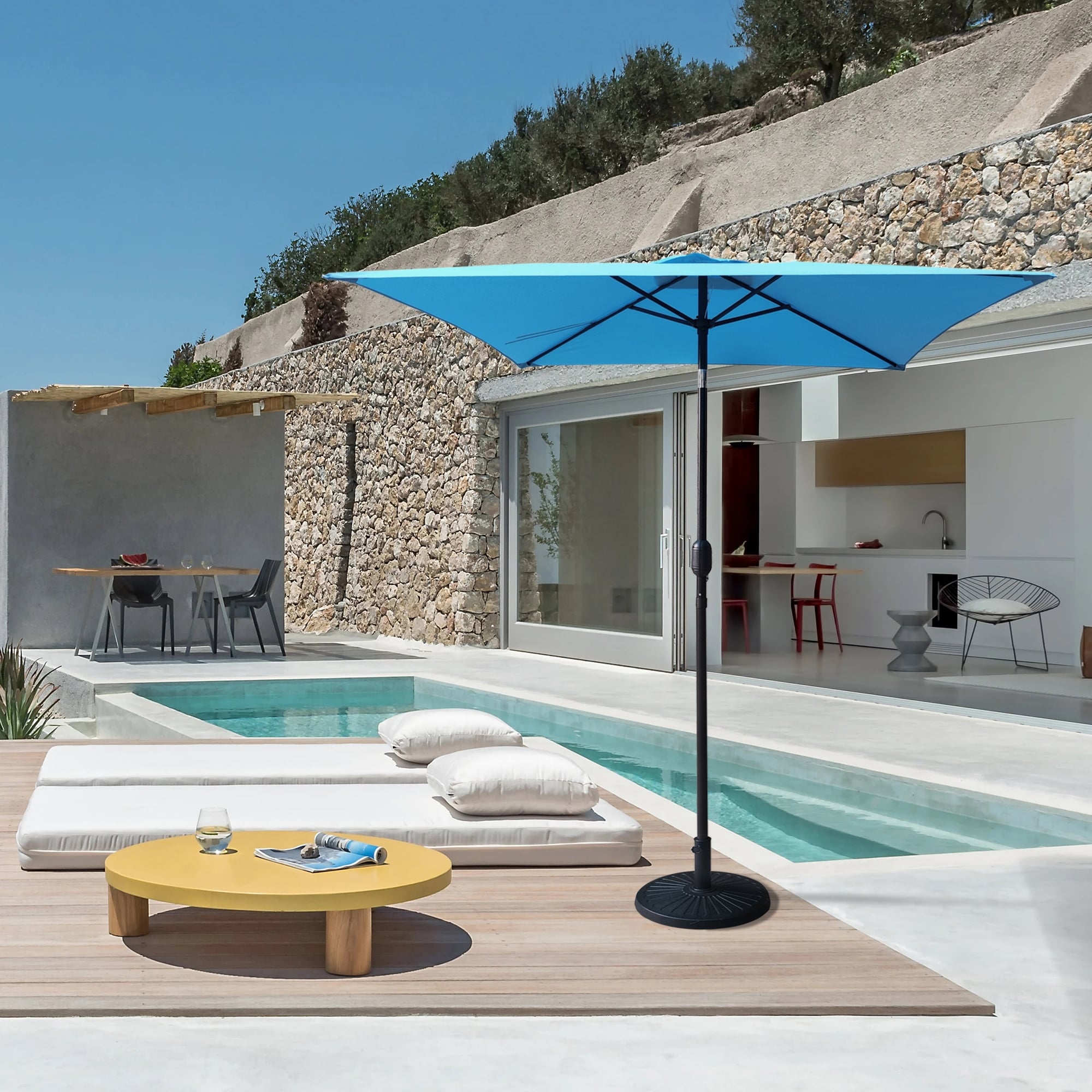 Sleek 7.5-foot Rectangular Tilting Umbrella (UV 35+) with Base