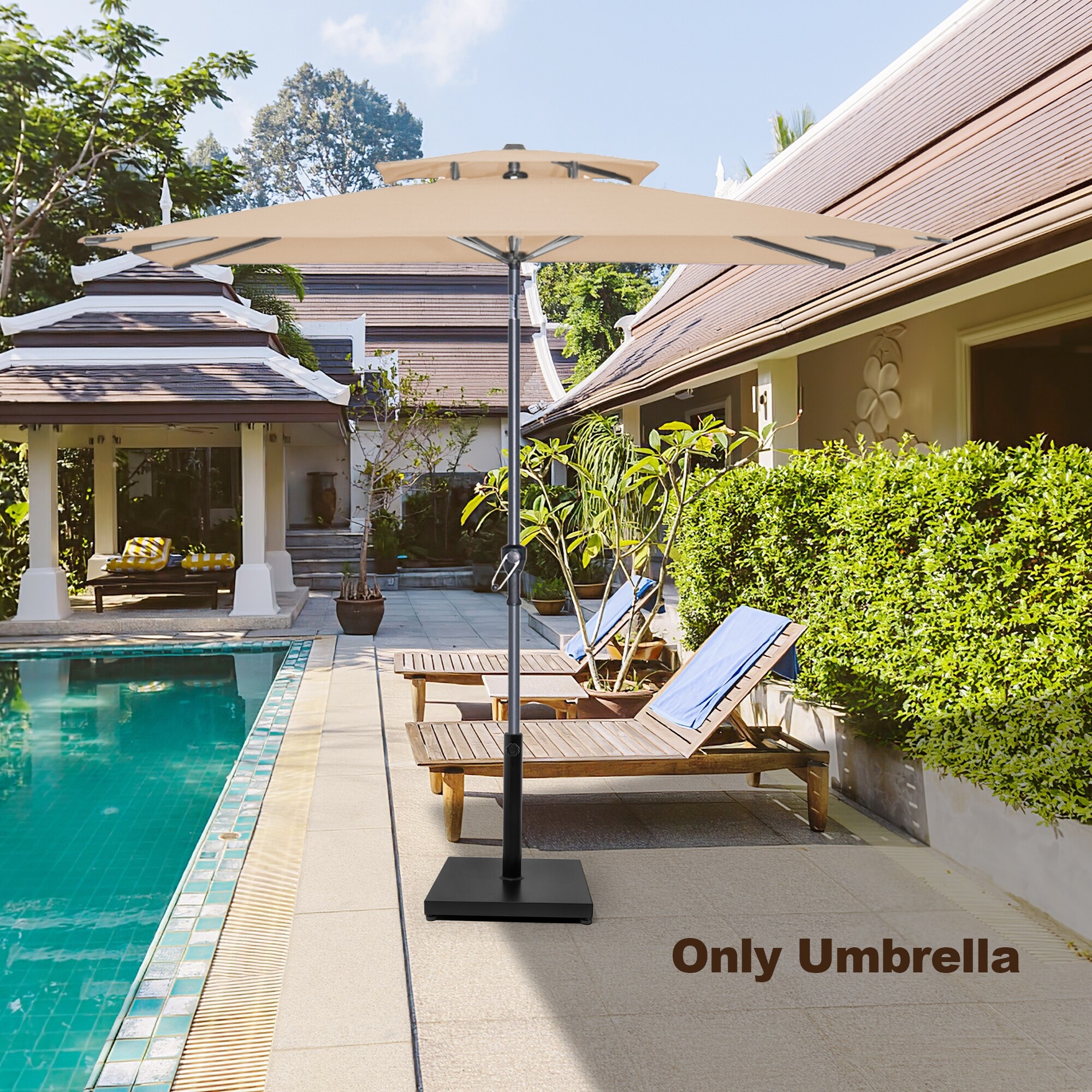Sleek 7.5-foot Rectangular Tilting UV 35+ Umbrella (No Base)