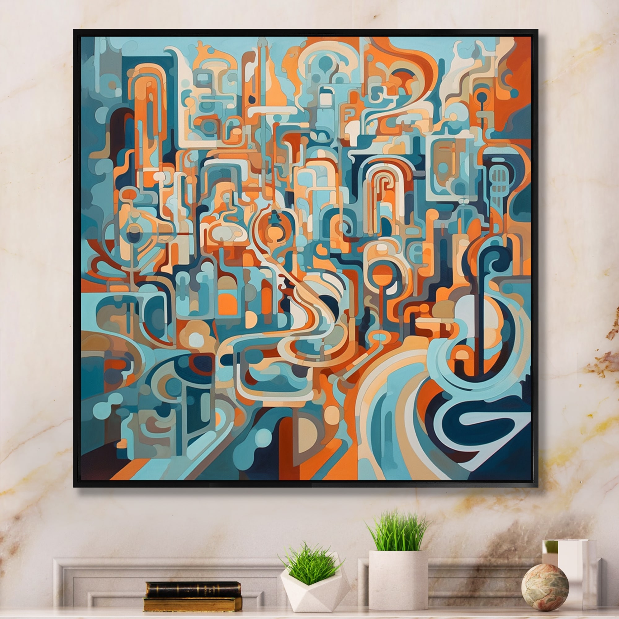 Designart "Abstract_Painting_Of Shapes And Curves" Modern Geometric Framed Wall Decor
