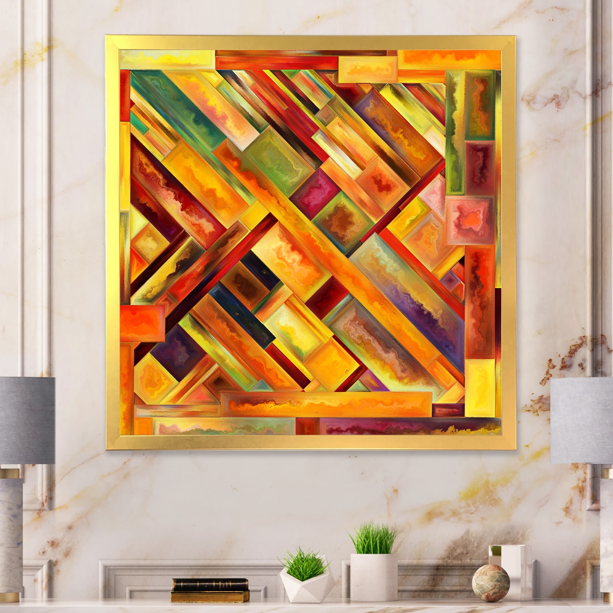 Oliver Gal Abstract Wall Art Framed Canvas Prints 'Night and Day' Paint - Gold, Gold