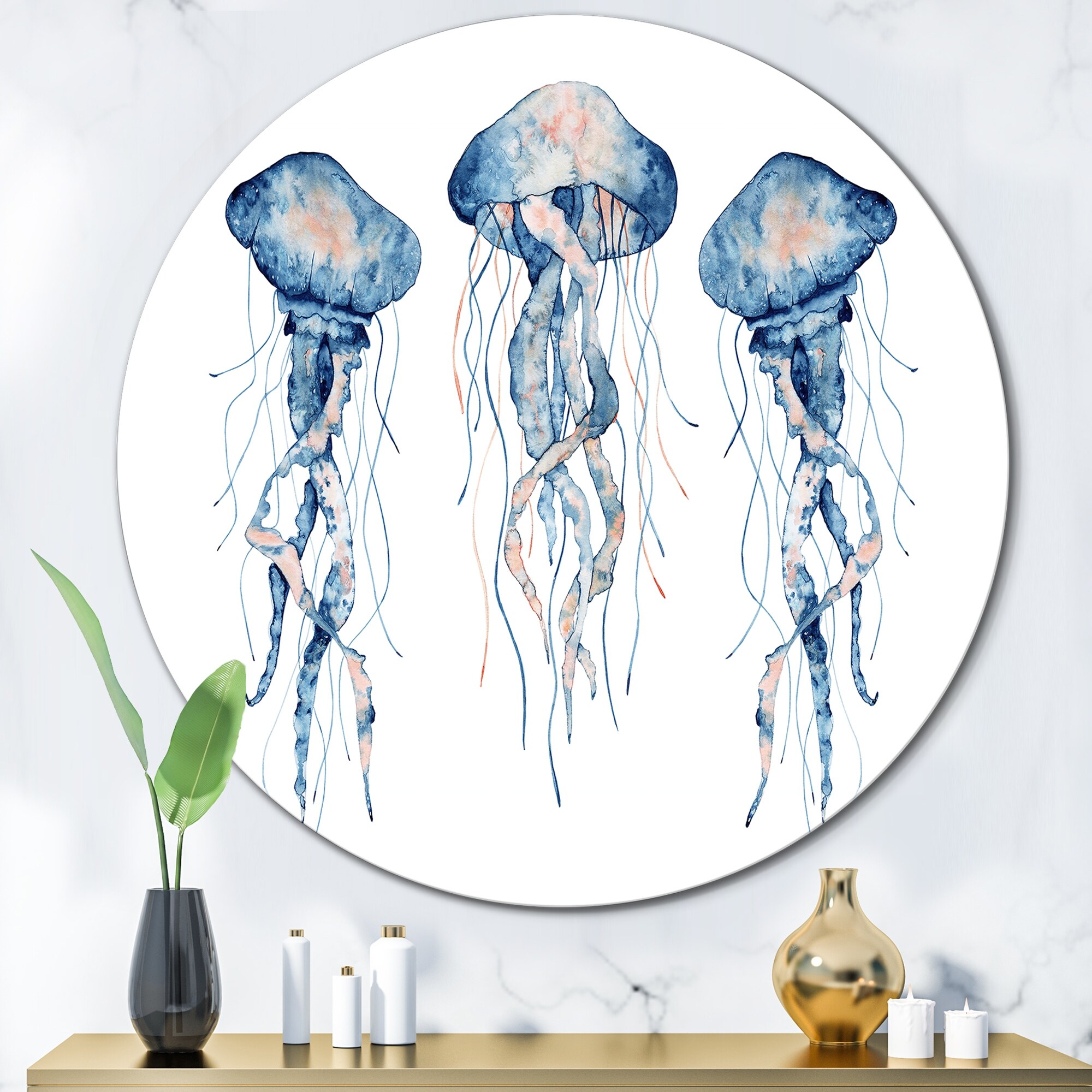 Designart 'Painted Medusa on White II' Nautical & Coastal Metal Circle Wall Art