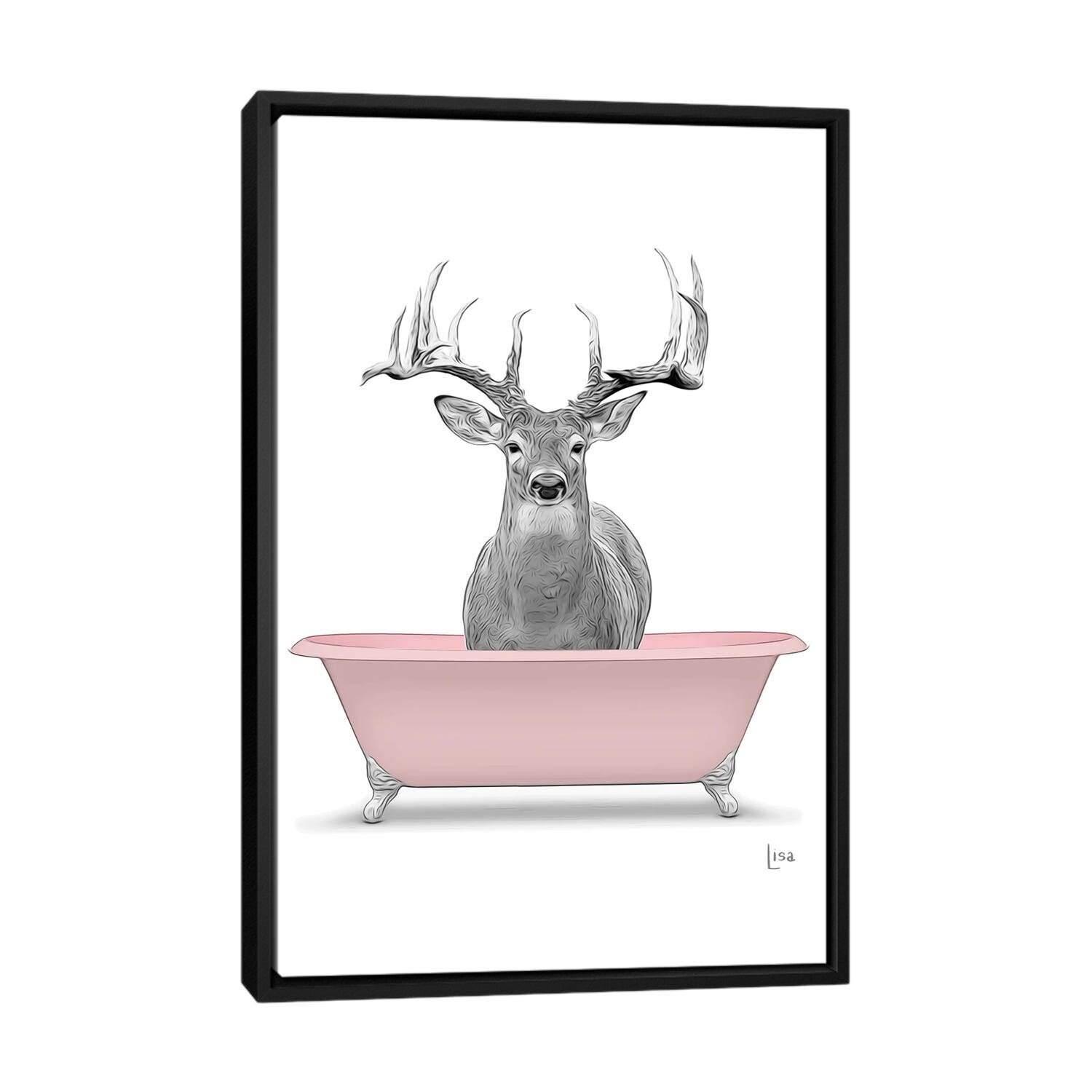 iCanvas "Deer In Pink Bathtub" by Printable Lisa's Pets Framed