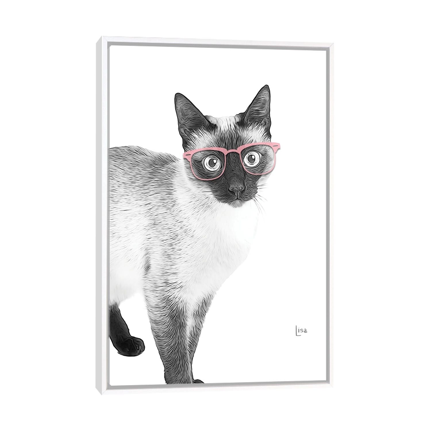 iCanvas "Siamese With Pink Glasses" by Printable Lisa's Pets Framed Canvas Print