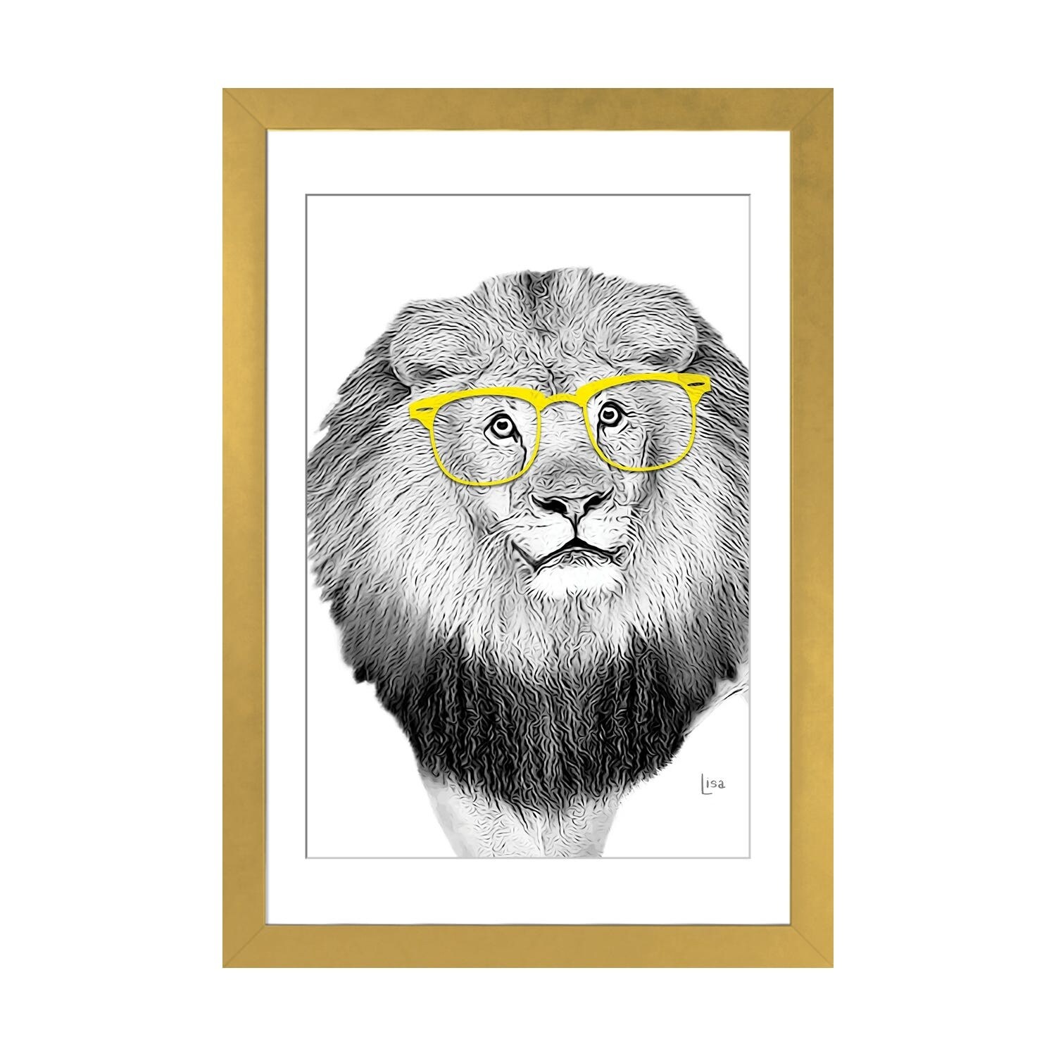 iCanvas "Lion With Yellow Glasses" by Printable Lisa's Pets Framed Canvas Print