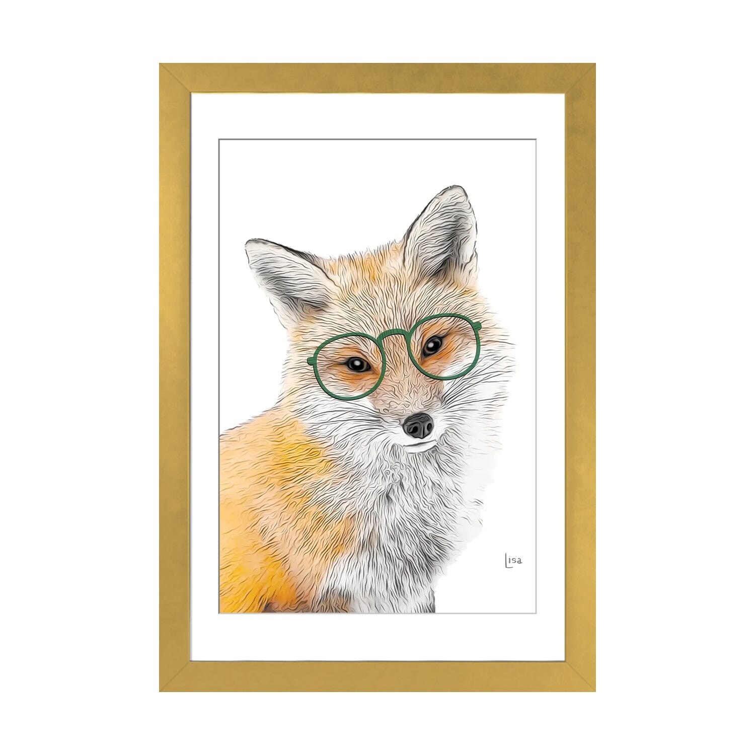 iCanvas "F0x With Green Glasses" by Printable Lisa's Pets Framed