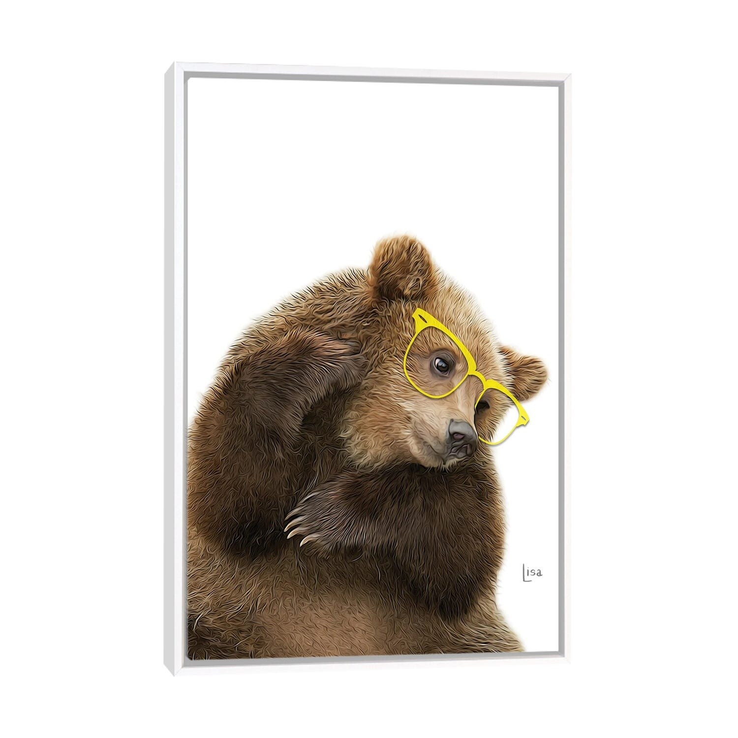 iCanvas "Tender Bear in Color With Yellow Glasses" by Printable Lisa's Pets Framed