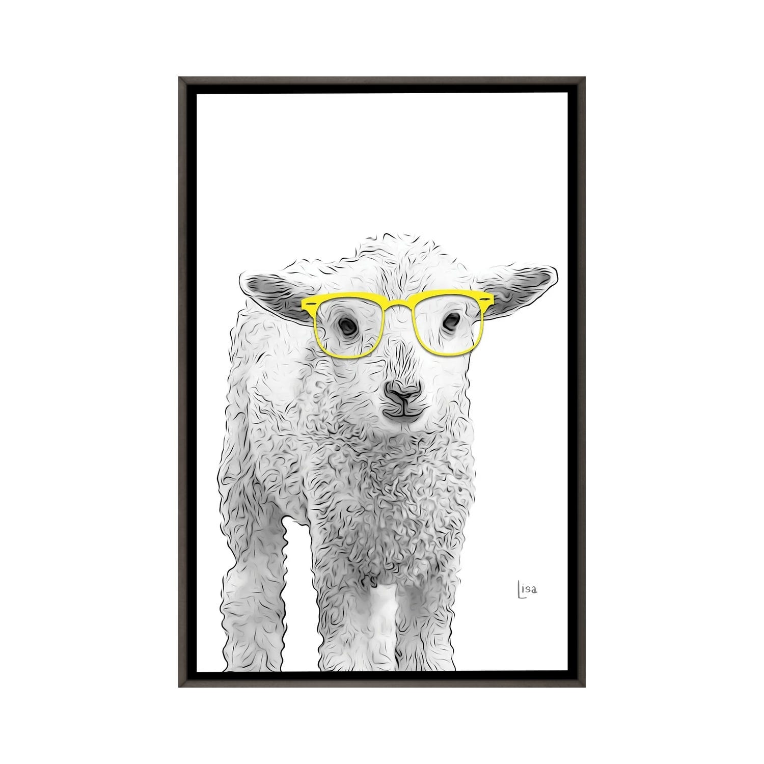 iCanvas "Lamb With Yellow Glasses" by Printable Lisa's Pets Framed