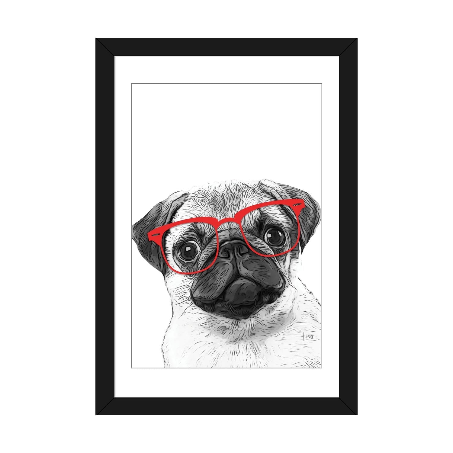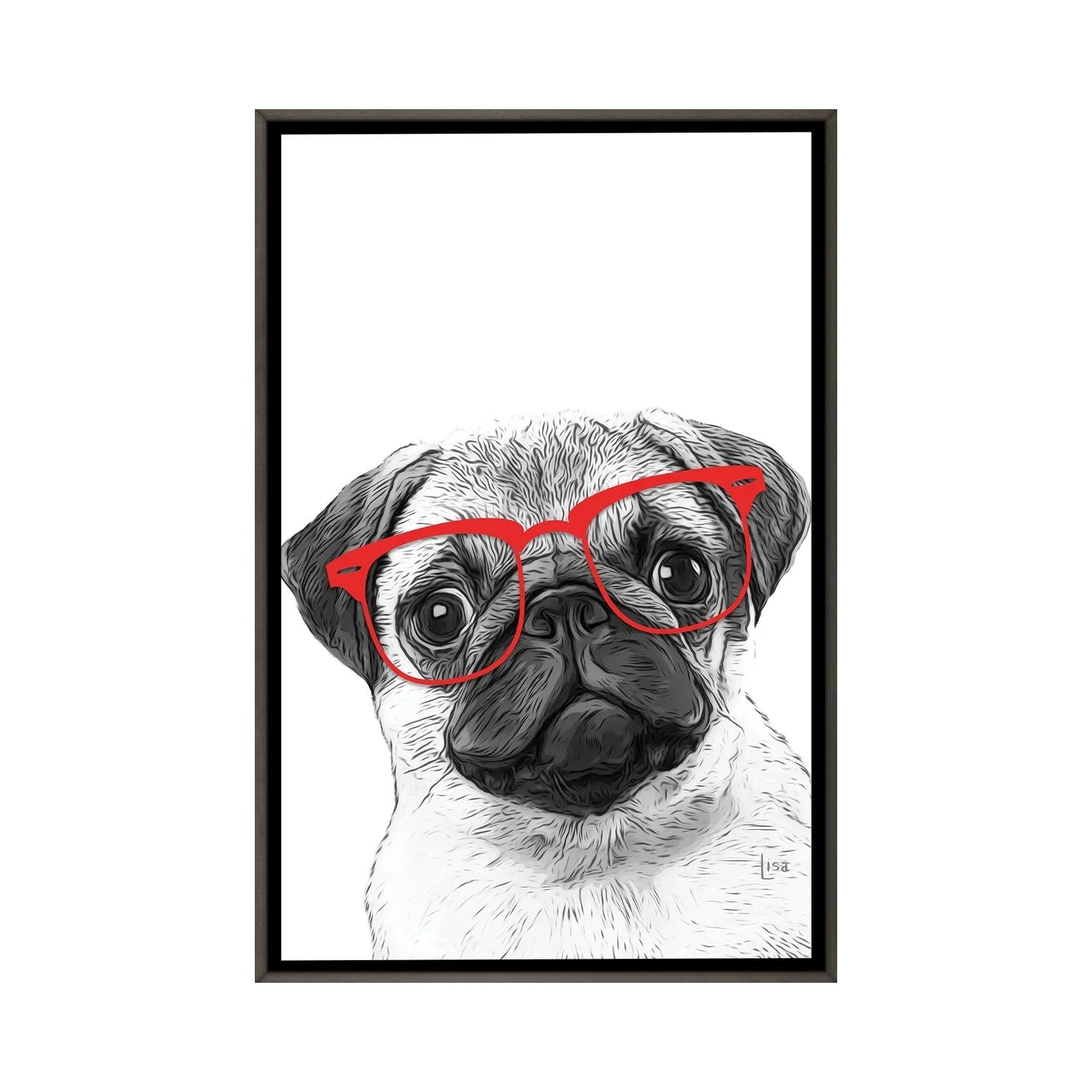 iCanvas "Pug With Red Glasses" by Printable Lisa's Pets Framed