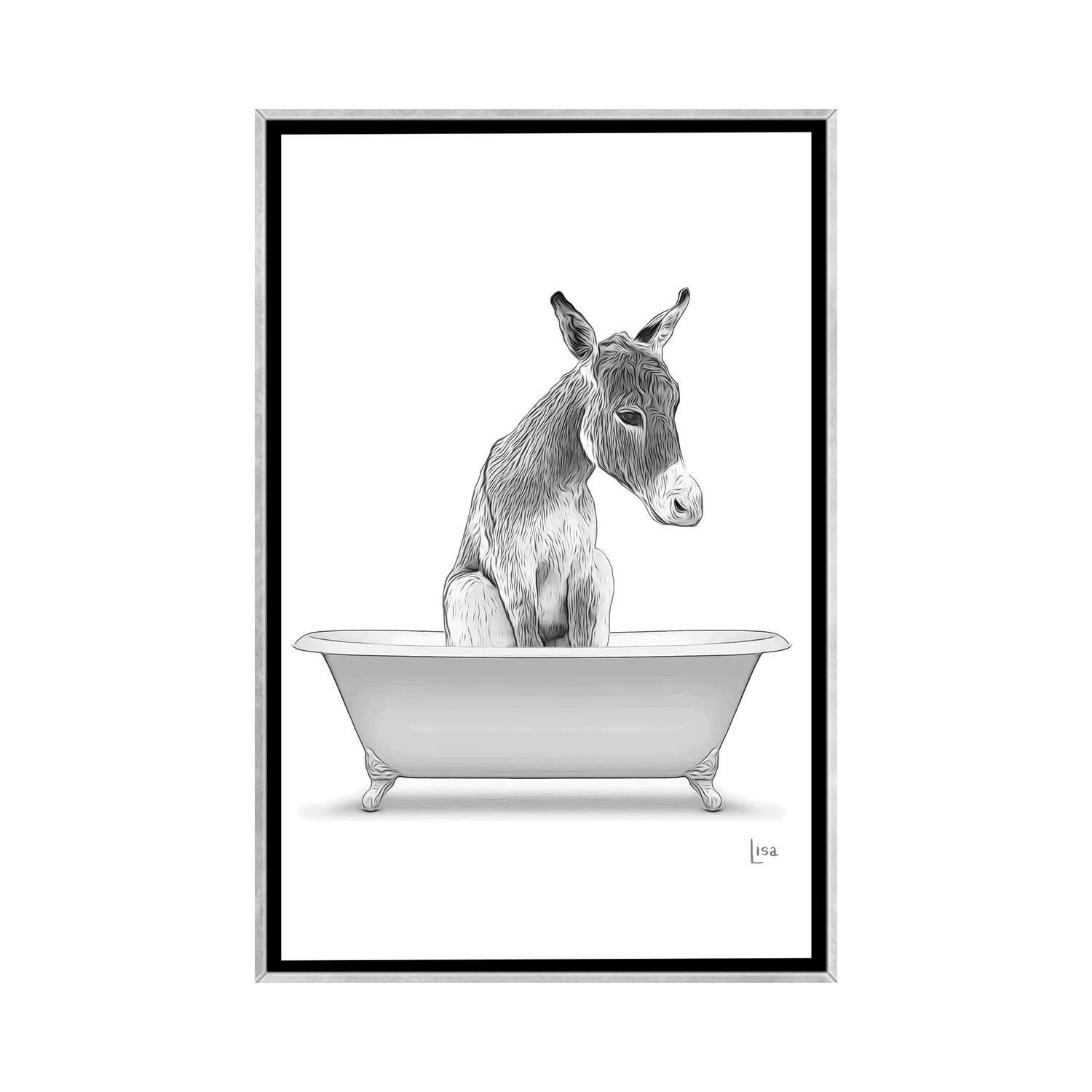 iCanvas "Donkey In Bw Bathtub" by Printable Lisa's Pets Framed