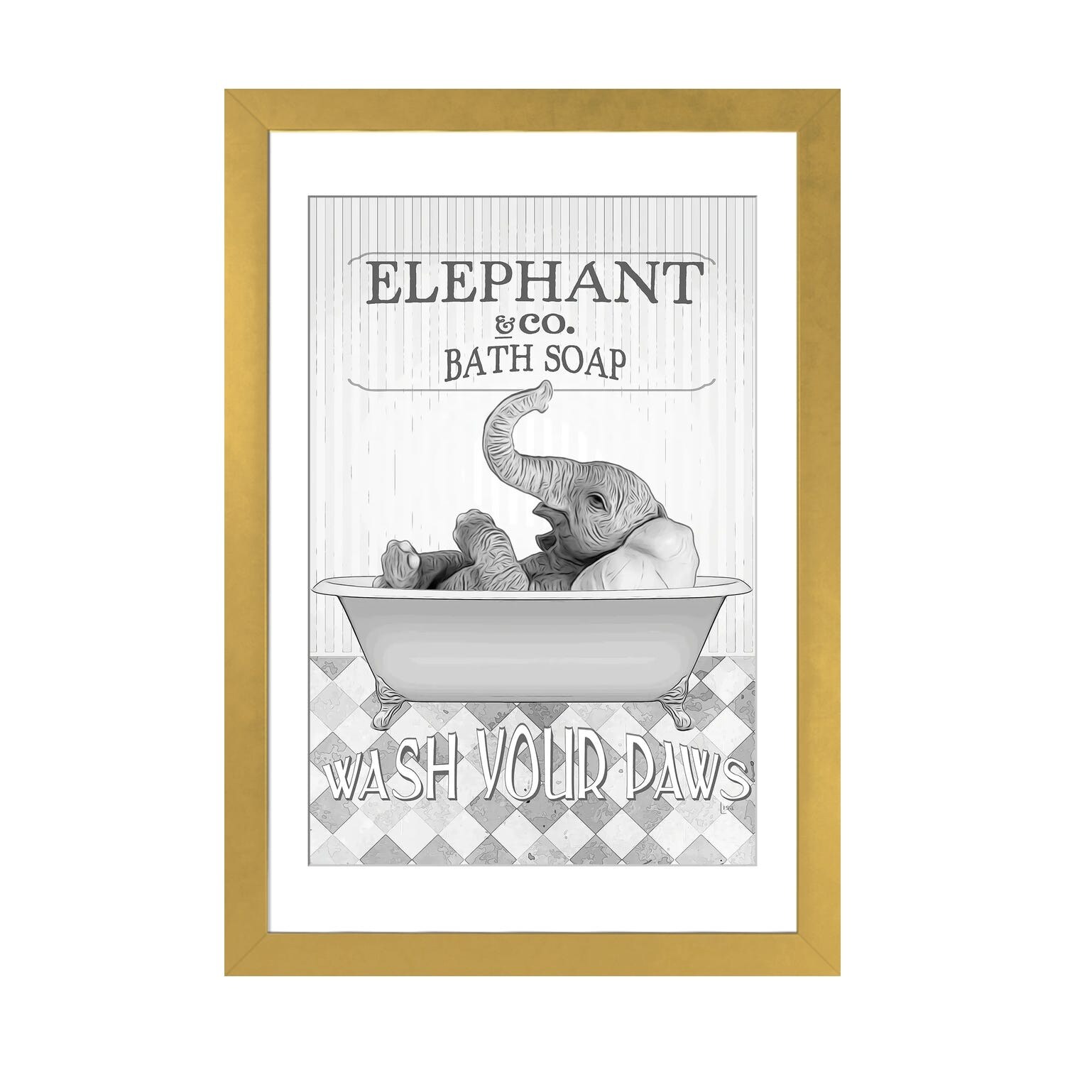 iCanvas "Elephant In the Bath With Red Bubbles" by Printable Lisa's Pets Framed Canvas Print