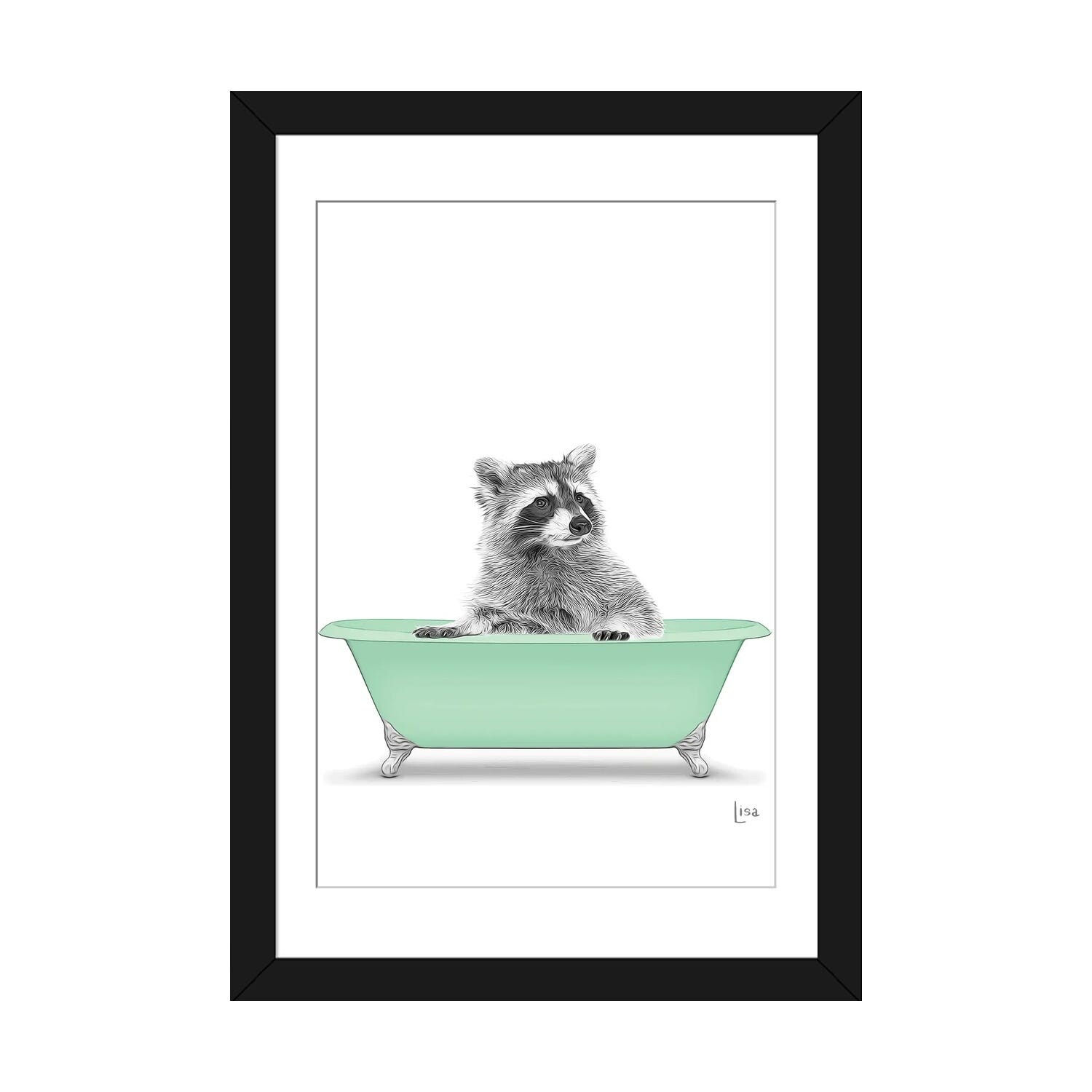 iCanvas "Racc0on In the Green Bath" by Printable Lisa's Pets Framed Canvas Print