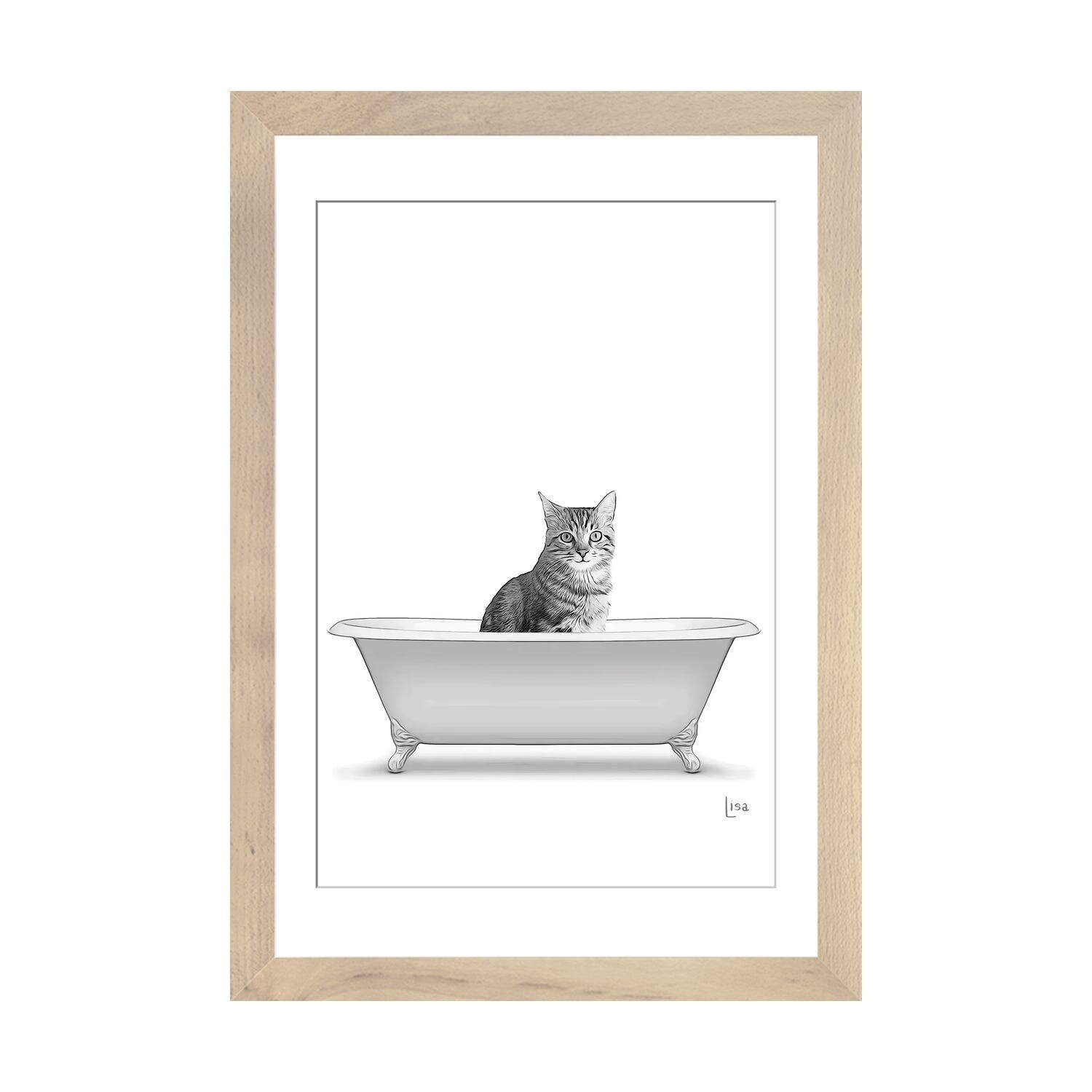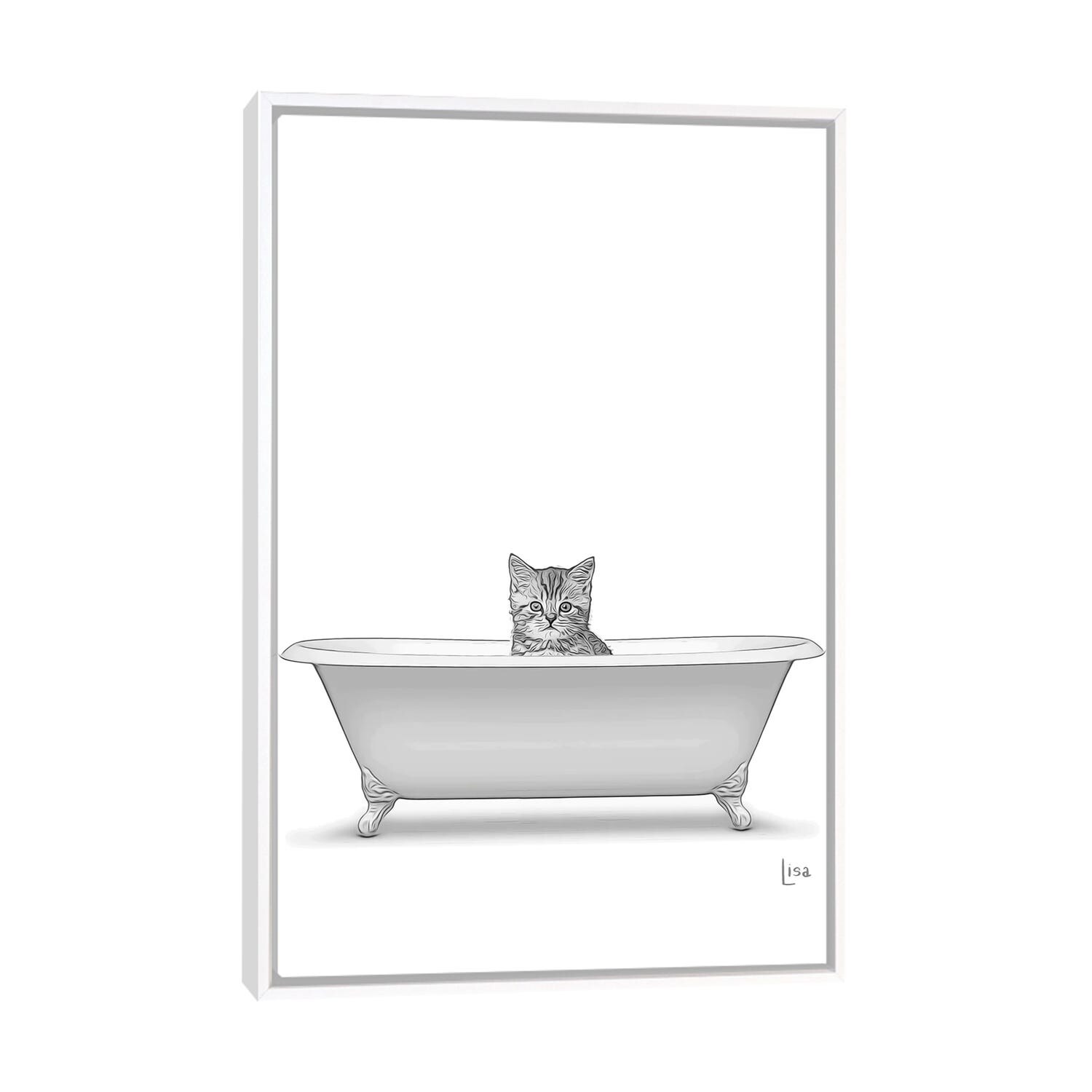 iCanvas "Bw Cat in the Bath" by Printable Lisa's Pets Framed Canvas Print